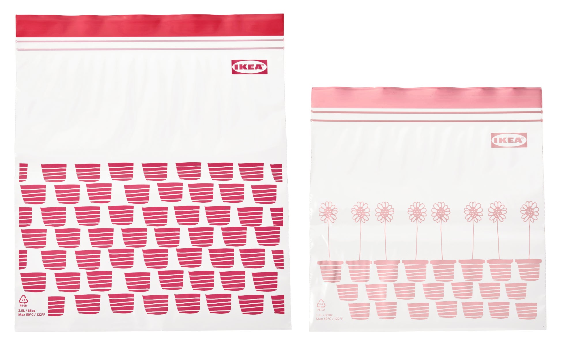 幅広いデザイン・サイズ展開をしているイケアのフリーザーバッグは、お客さまからも大人気のロングセラー商品です。食品や小物入れ、旅行時の衣服など、あらゆる場面で活躍します。