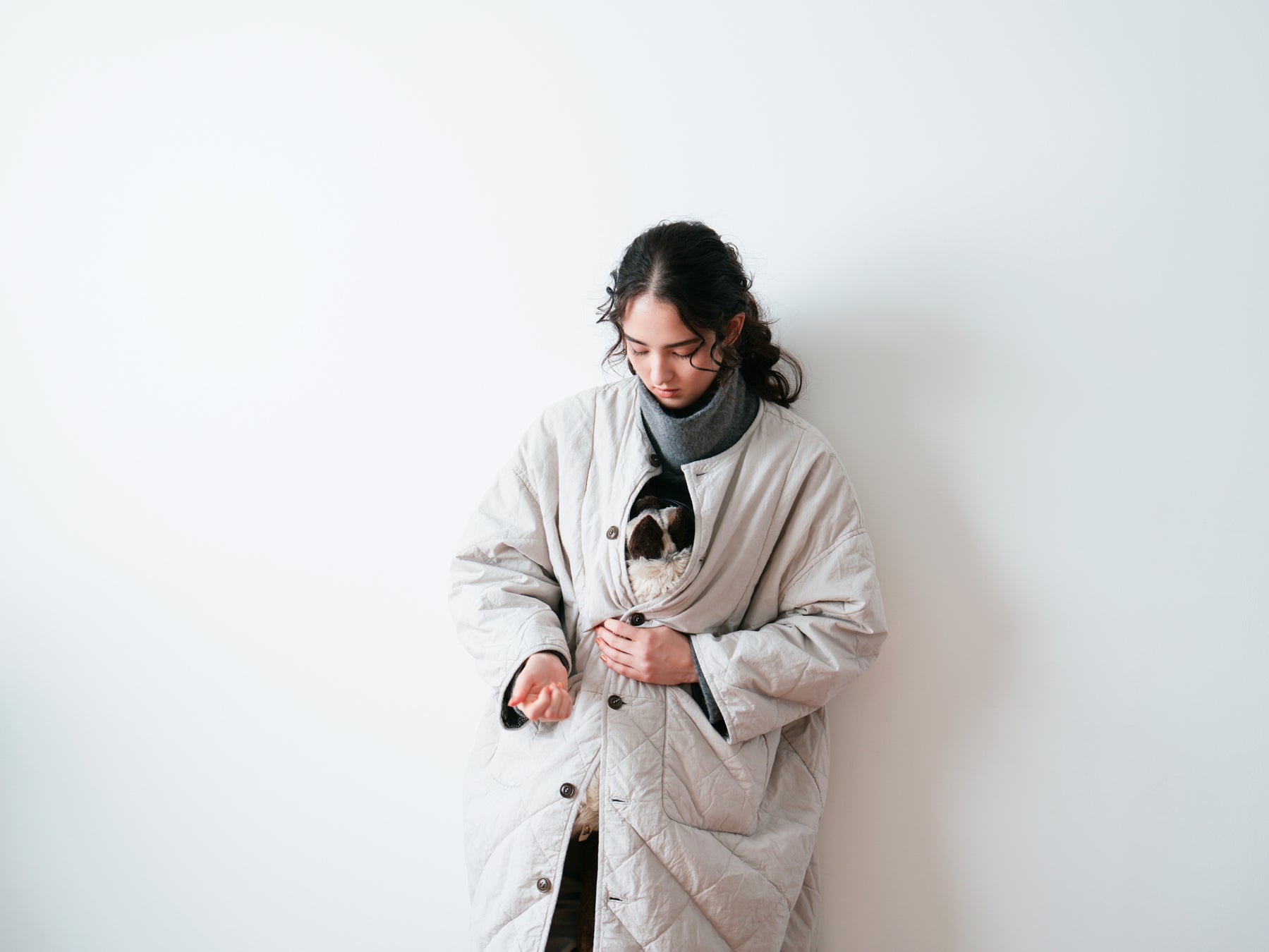 高密度のコットンラミーを使用し、風を通しにくく中綿入りで保温性もある為、アウターとして秋口から初春まで長いシーズンでお使いいただけるアイテムです。