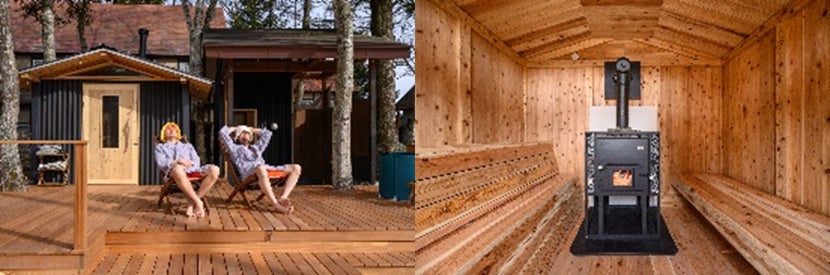 ナチュラルな素材でできたサウナロッジを貸切で。