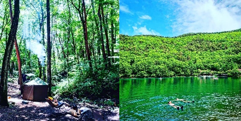 神秘的な山上湖「四尾連湖」の湖畔にあるテントサウナ施設。