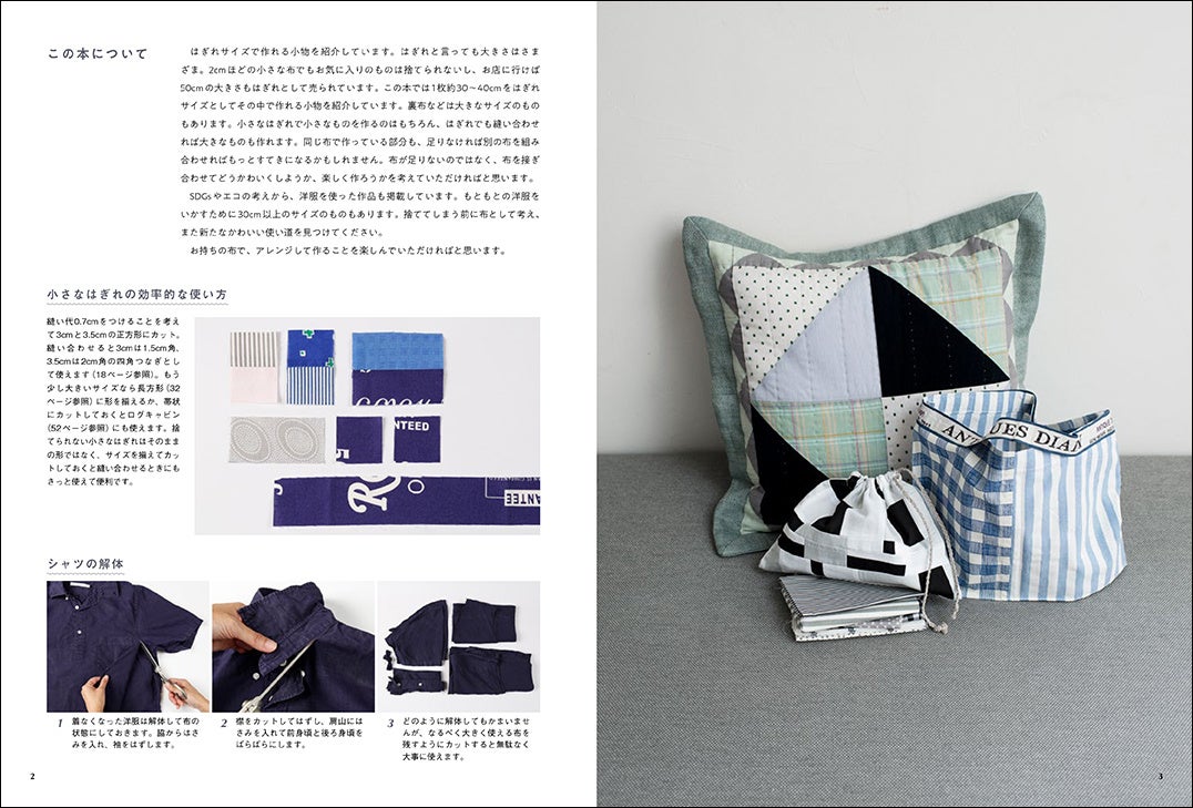 着なくなった洋服からはぎれを作る解体方法のコツや、小物へのファスナーつけなど、わかりにくいところは写真で解説しています。布好きの布を大事に使う気持ちと、楽しさが伝わってくるような1冊です。