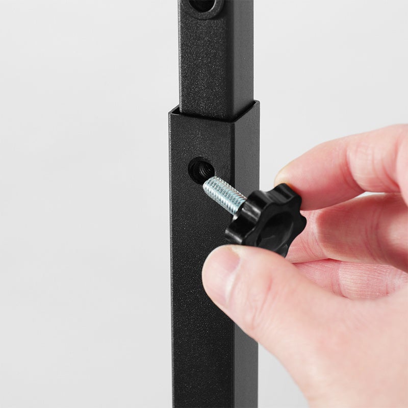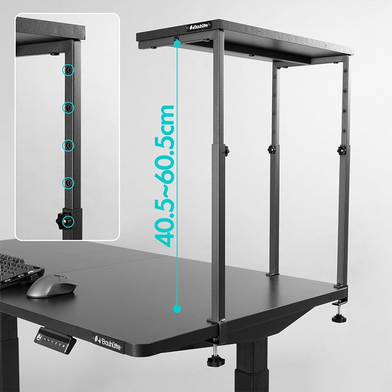 5cm間隔・5段階の高さ調節(40.5~60.5cm)に対応し、あらゆるPCサイズに合わせた最適なセッティングを実現。PC天面との間に意図的な空間を設けることで、排熱を阻害しない配置を実現します。手回し可能なノブボルトを採用しているため、設置・調節に際して別途工具は不要です。