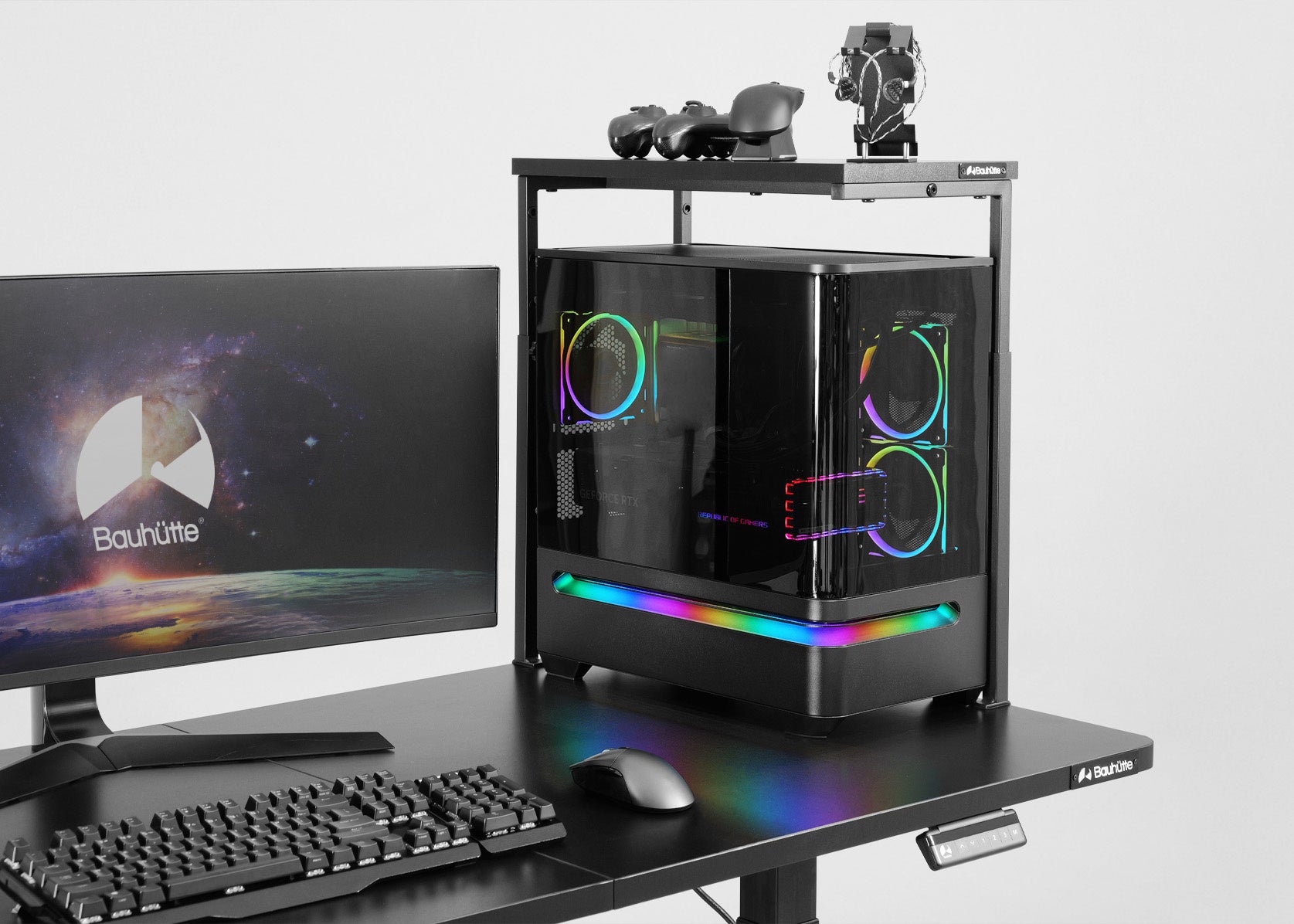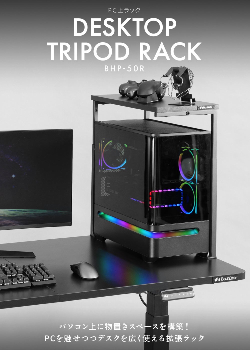 「ゲーミングPCの上に物を置きたい」を安全に叶える。3本脚構造でビジュを隠さない専用ラックが誕生!