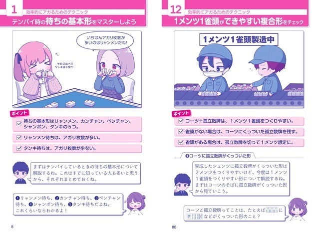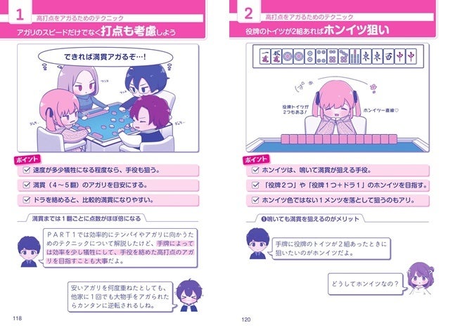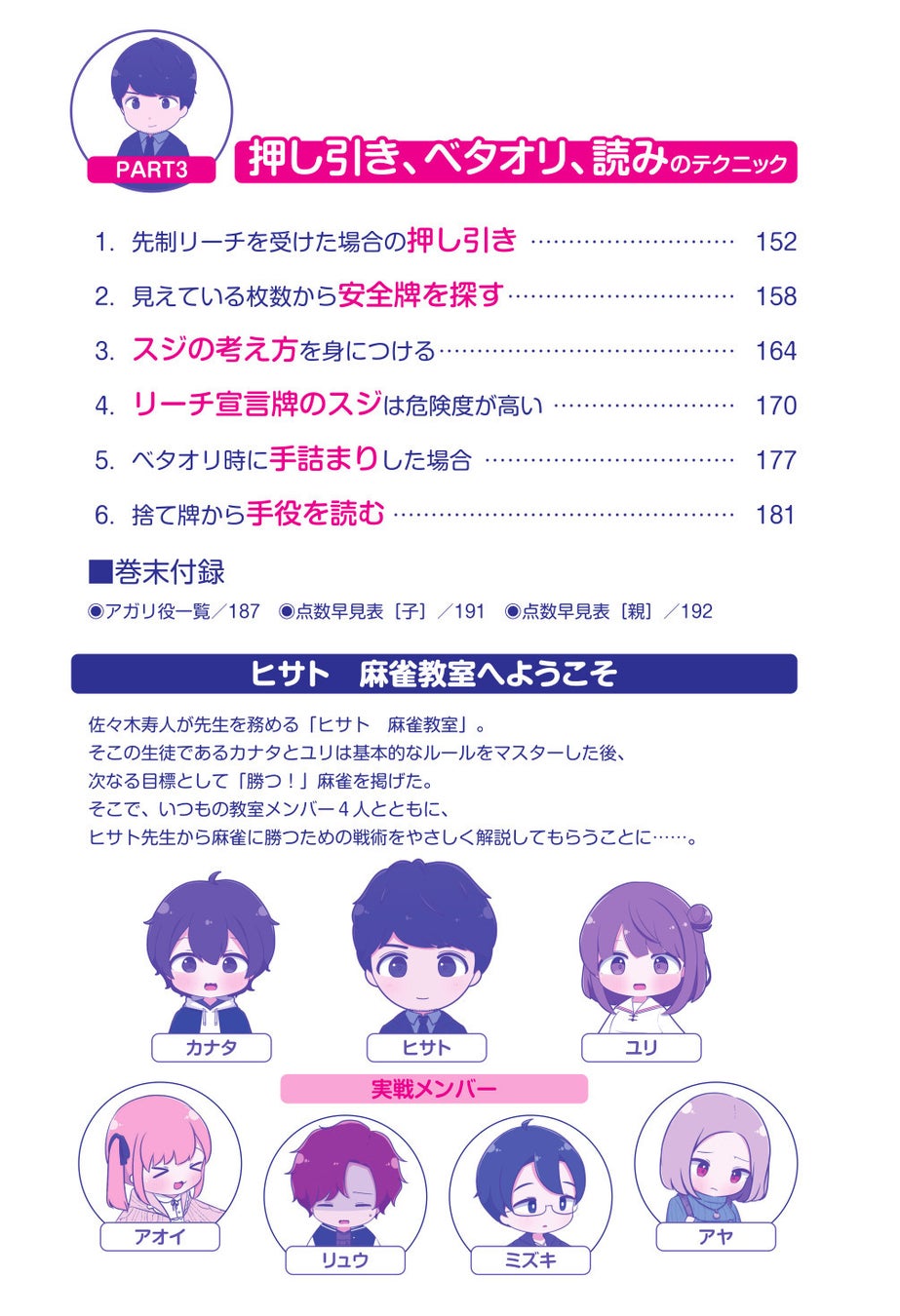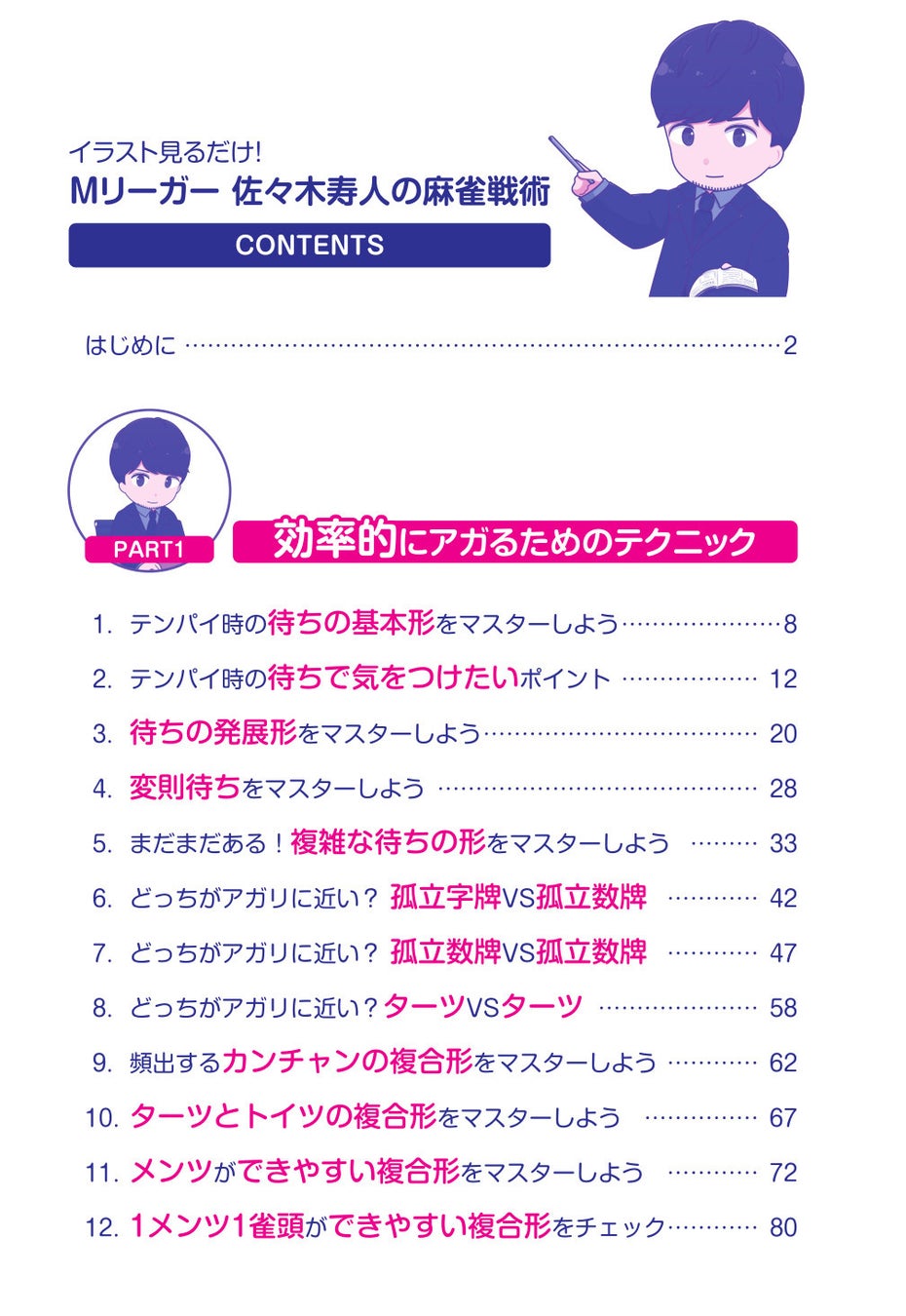 『Mリーグ』の人気チーム「KONAMI麻雀格闘倶楽部」で活躍するトッププロ・佐々木寿人氏が麻雀の基本的な戦術から勝つためのテクニックを指南。イラストと会話文でスッと頭に入る構成で、「高打点をアガるためのテクニック」や「効率的にアガるテクニック」をトピックごとにわかりやすく伝えていきます!