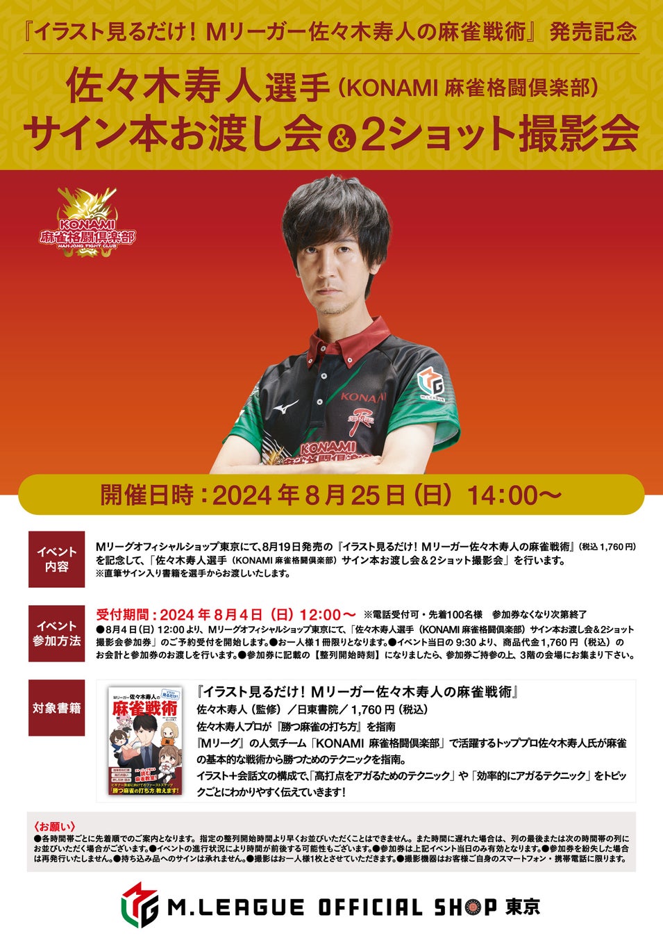 本書の刊行を記念し、8月25日(日)にMリーグオフィシャルショップ東京(丸善 日本橋店3F)さんにおいて、以下のイベントを開催します。