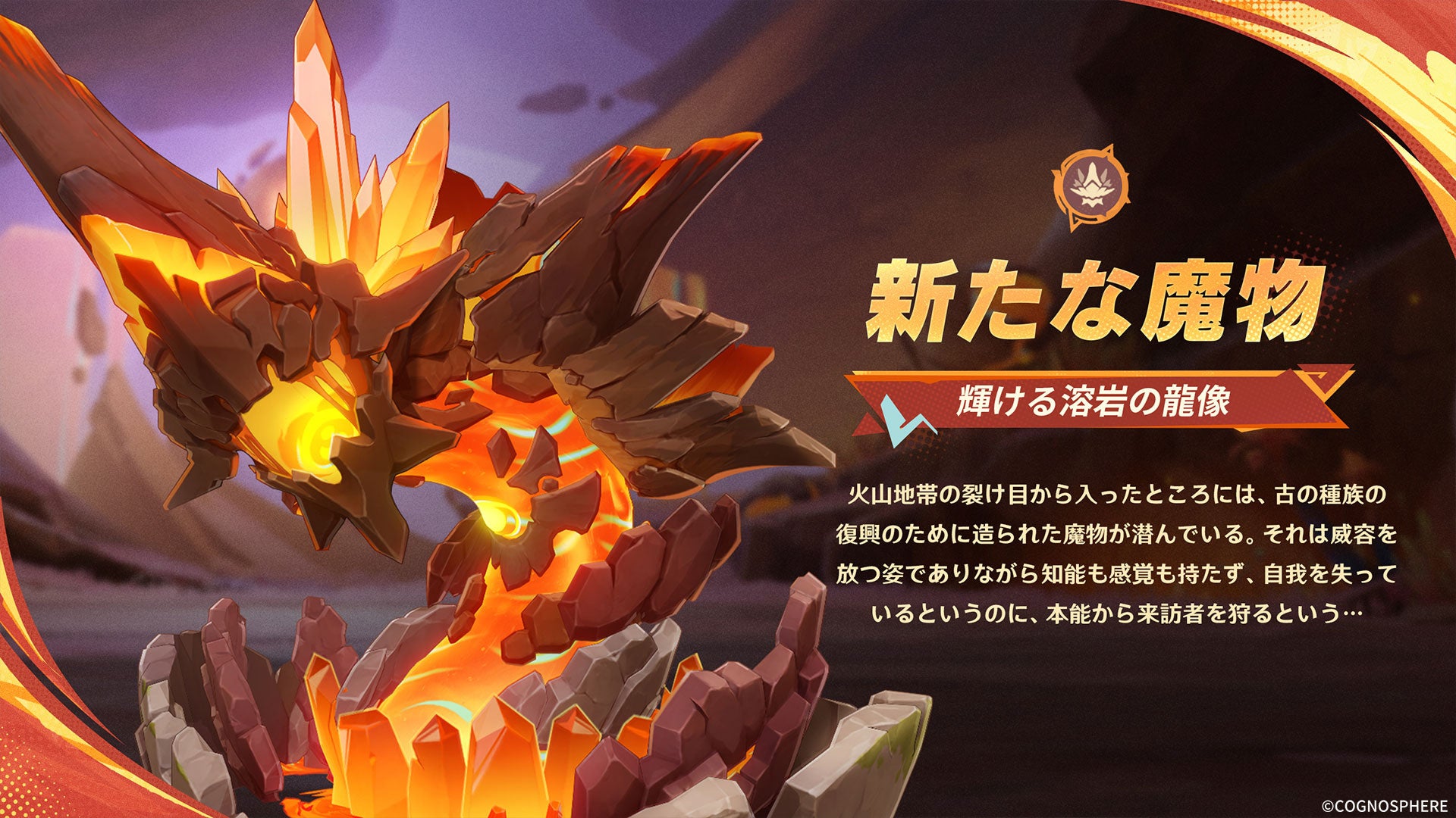 新たな挑戦としては、火山の地熱の裂け目に潜む新たなボス「輝ける溶岩の龍像」が登場します。