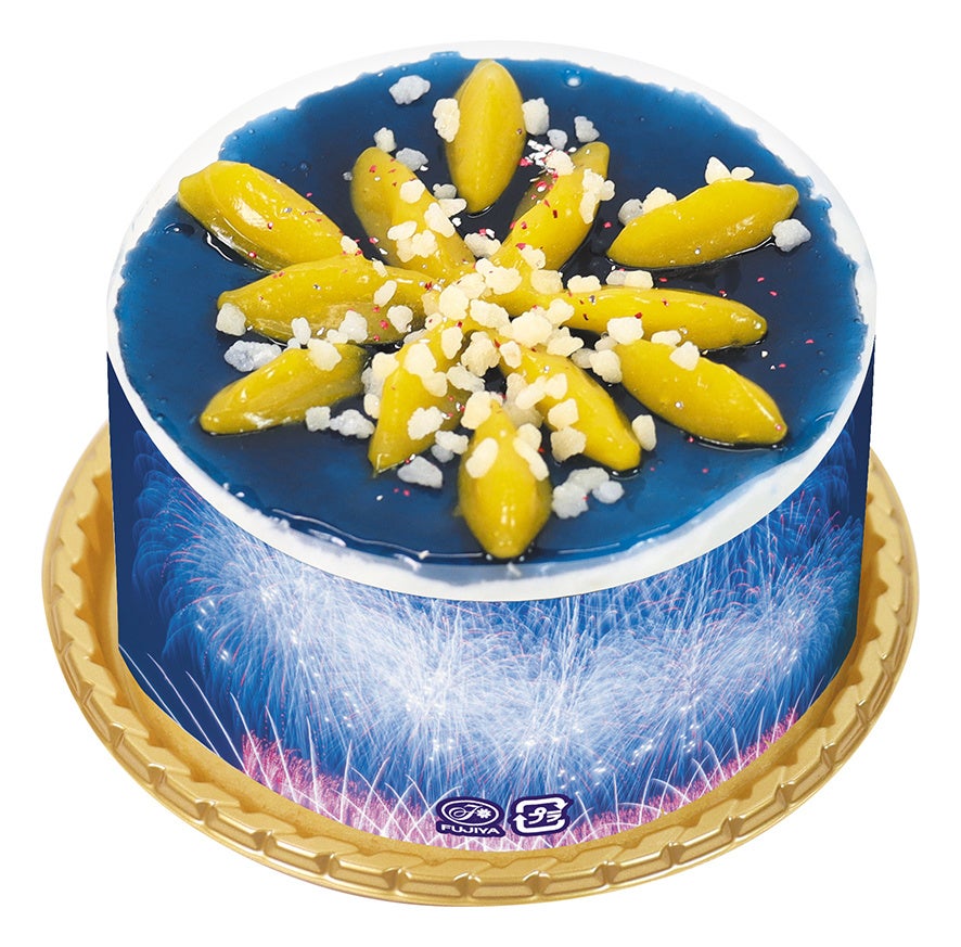 本年のコラボケーキは、ソーダ味グラサージュで夜空を、レモンソースで花火が花開く様子をイメージしたレアチーズムースです。見た目にも味わいにもこだわった爽やかな商品に仕上げました。