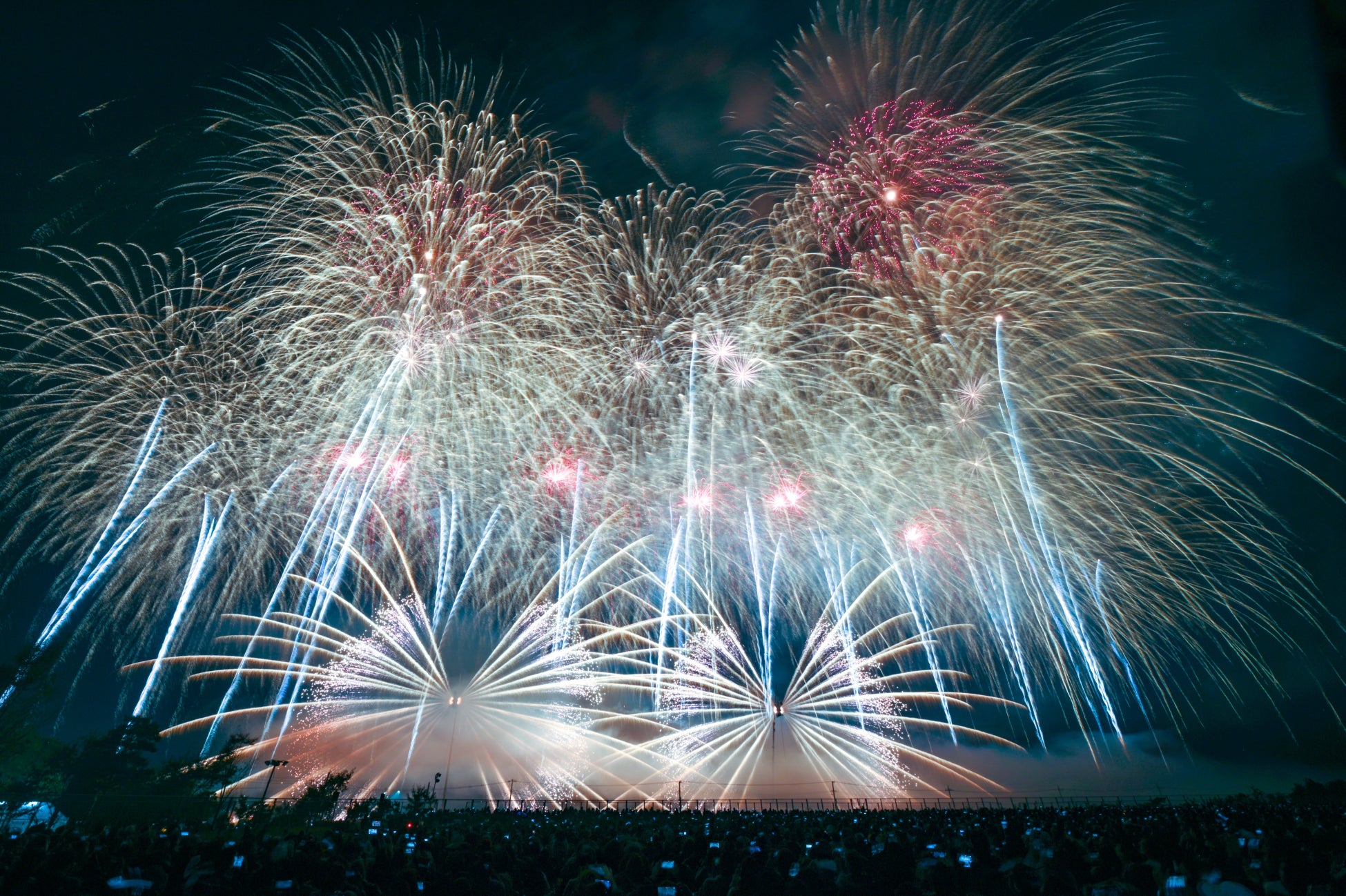 日本橋丸玉屋の花火は、夜空をキャンバスに見立て、高高度、中高度、低高度の空間すべてを大胆に使ったショーデザインを得意としています。