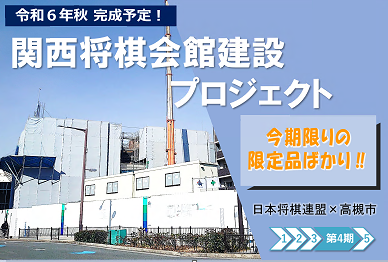 高槻市が3月18日から14日間限定で実施している関西将棋会館建設を支援する第4期のクラウドファンディングが、終了まで残り5日となりました。累計1100件以上の申し込みをいただくなど人気の寄附者銘板も今回が最後の募集となります。これから数々の名勝負が繰り広げられる新関西将棋会館に末永く名前が刻まれる銘板で、5万円から申し込みができます。また、タイトル戦の会場にもなった「摂津峡 花の里温泉 山水館」での羽生善治九段との指導対局、藤井聡太竜王・名人、羽生善治九段、福間香奈女流五冠をはじめとした東西棋士・女流棋士27人によるプレミアム御朱印帳といった魅力的な記念品もご用意していますので、ご協力をお願いします。