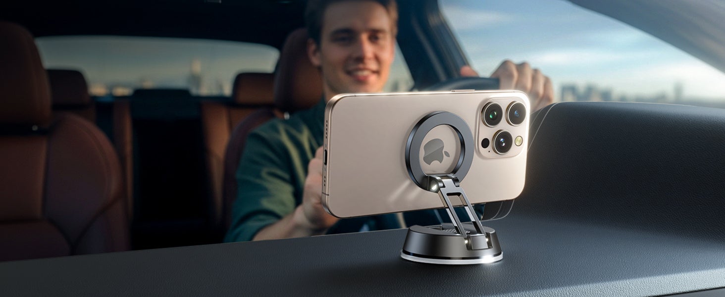 独自の二軸アーム固定機構に加え、ナノ吸着ゲルと真空吸盤ロックを融合し、走行中の振動や悪路でも安定した保持を実現しました。航空アルミ合金製の支持軸を採用し、強度と耐久性にも優れています。