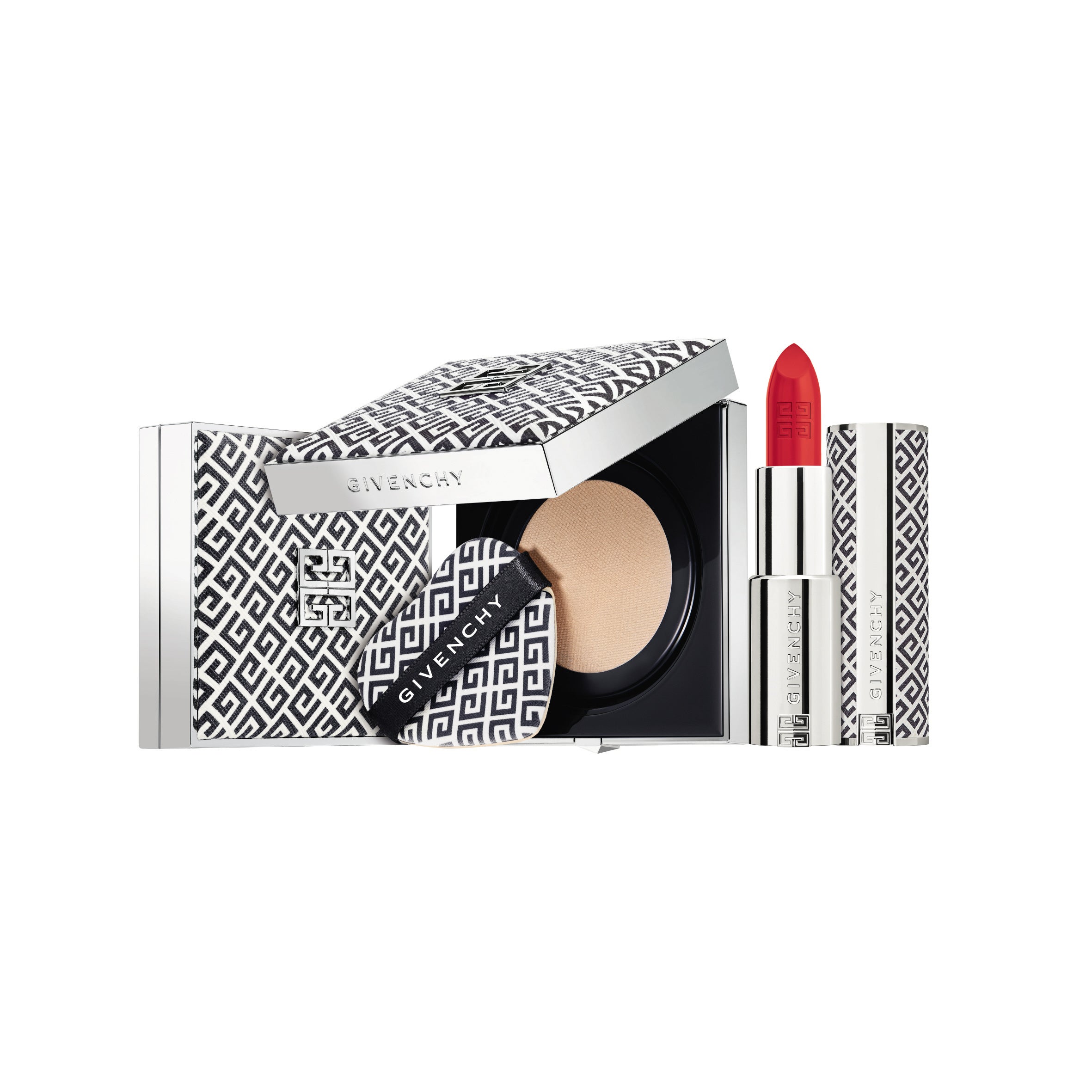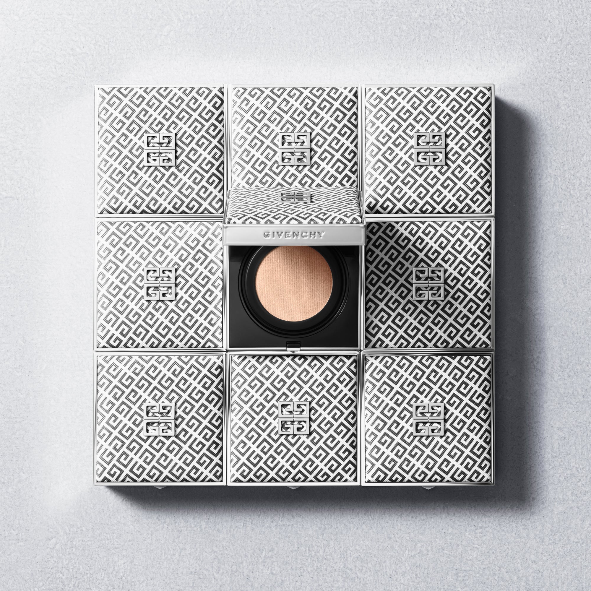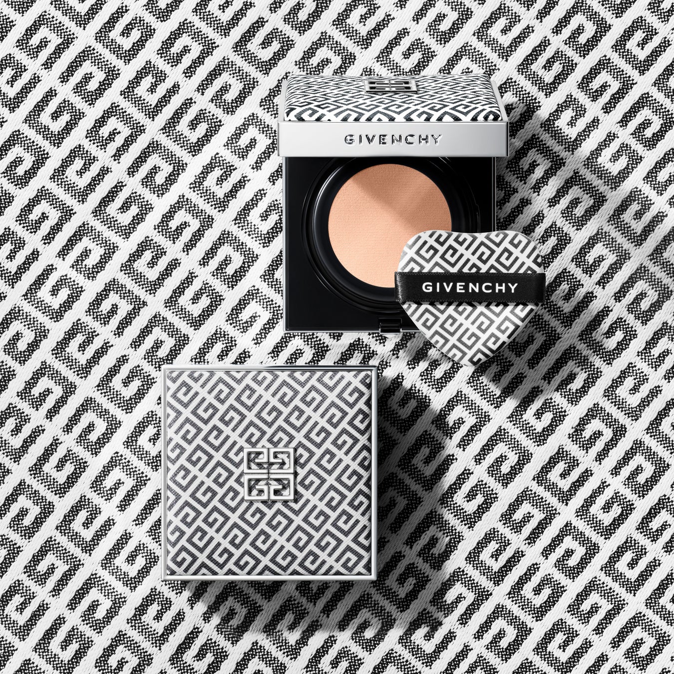 パッケージは、ジバンシィ クチュールのモダンなエレガンスを表現した、ホワイト×ブラックの4Gロゴのモノグラムをあしらった限定デザイン。付属のパフも限定のモノグラムデザインで統一されています。
