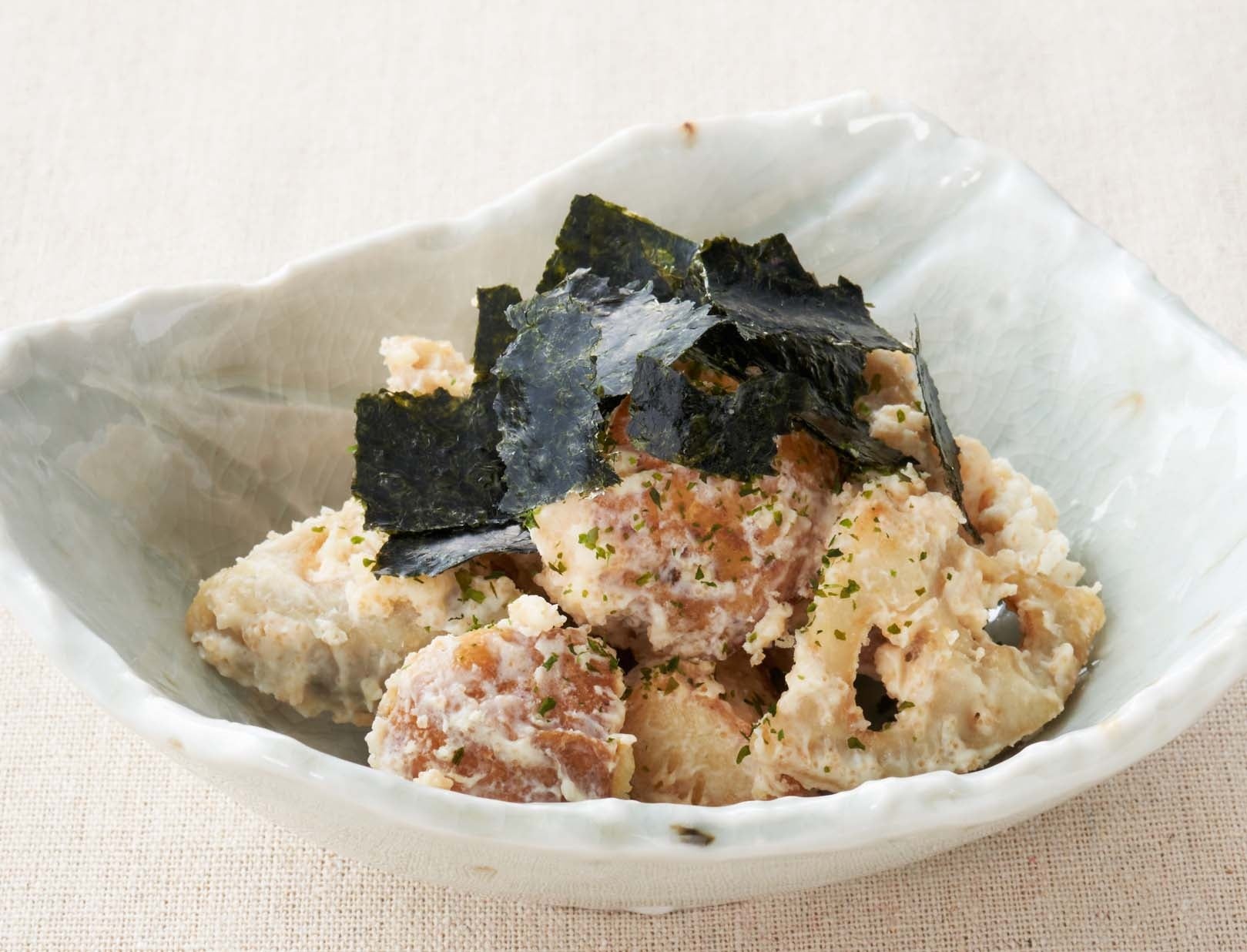 れんこんとじゃが芋のたらこチーズ和え 420 円(税込462 円)