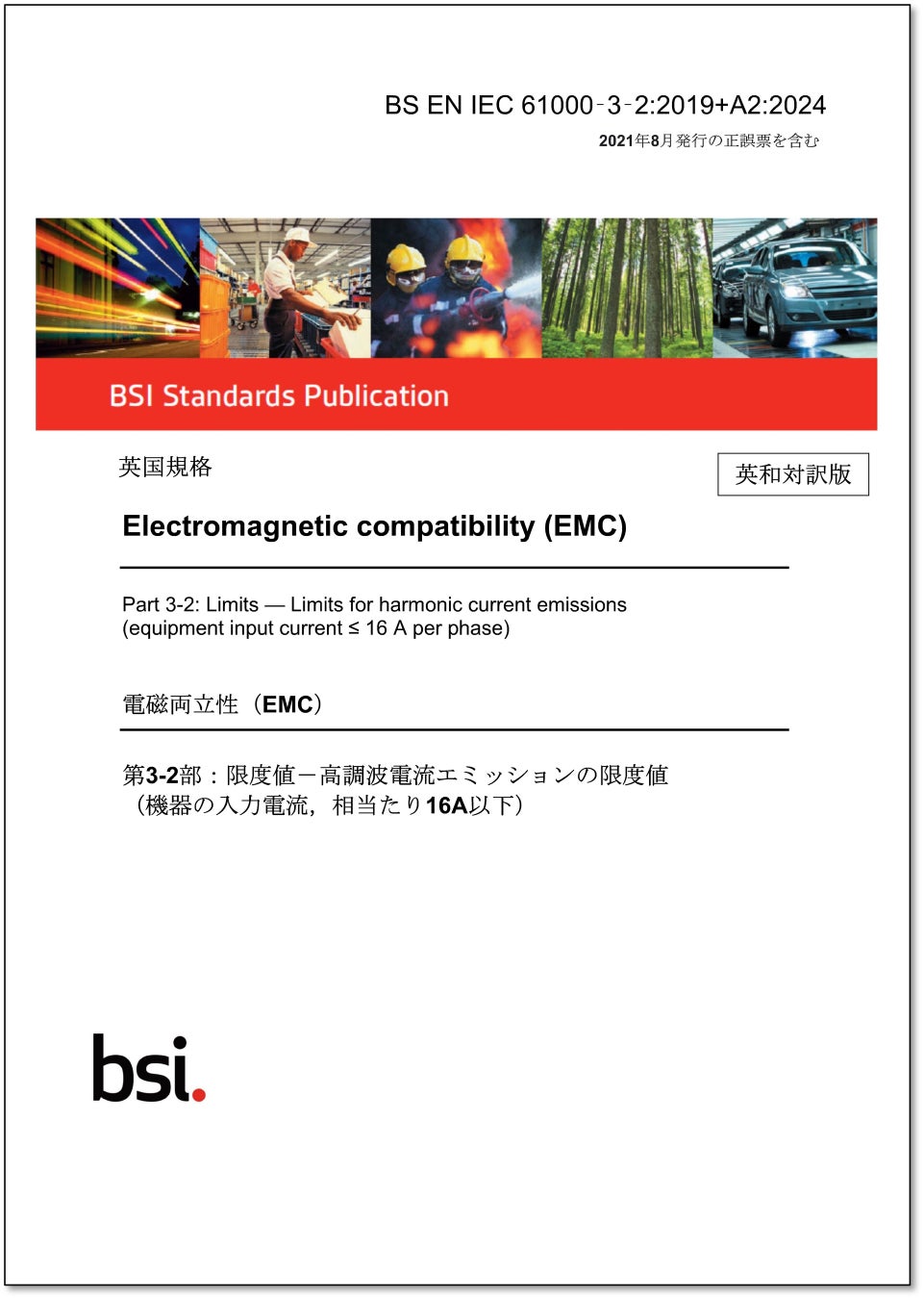 BS EN IEC 61000-3-2:2019+A2:2024「電磁両立性(EMC)-第3-2部:限度値-高調波電流エミッションの限度値(機器の入力電流,相当たり16A以下)」