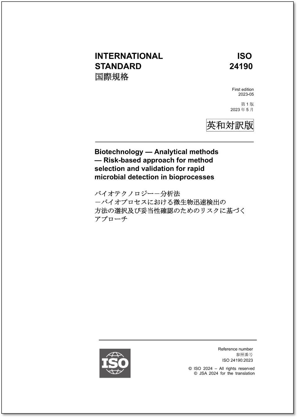 ISO 24190:2023「バイオテクノロジー-分析法-バイオプロセスにおける微生物迅速検出の方法の選択及び妥当性確認のためのリスクに基づくアプローチ」