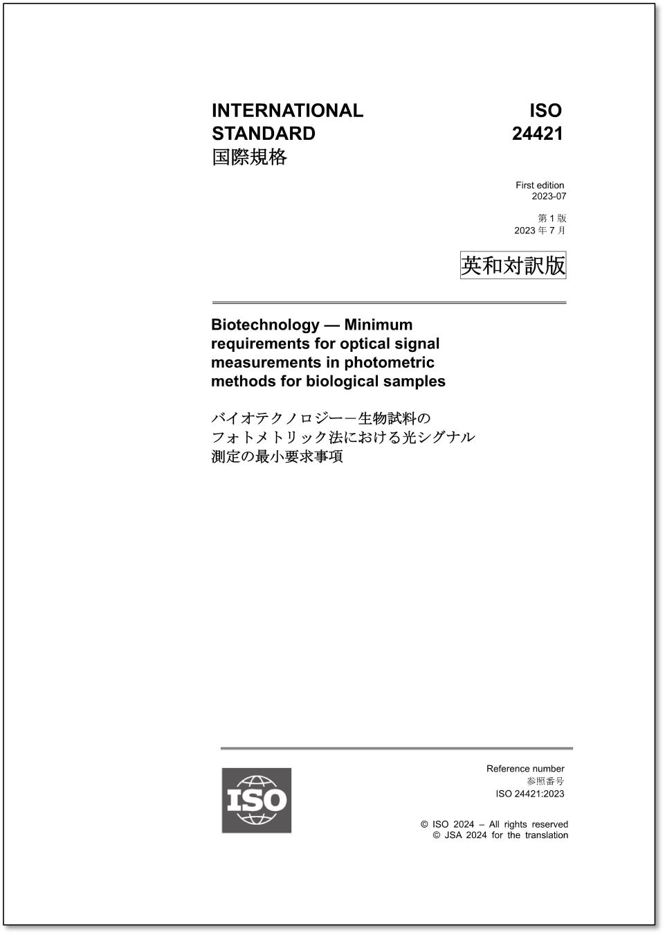 ISO 24421:2023「バイオテクノロジー-生物試料のフォトメトリック法における光シグナル測定の最小要求事項」