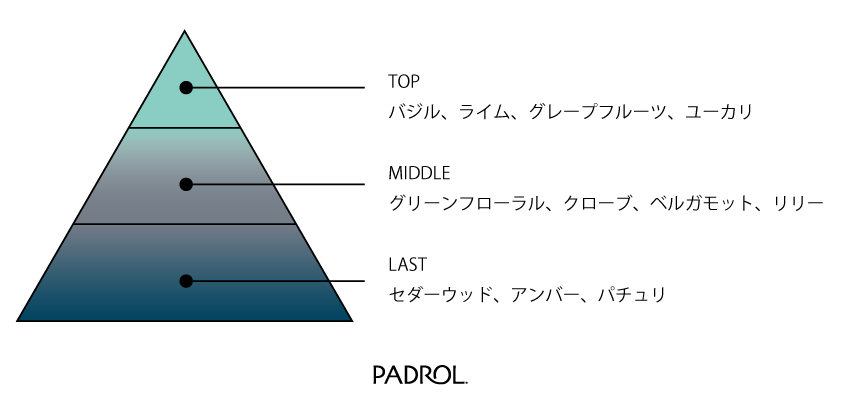 ライムやグレープフルーツのすっきりとしたシトラスノートに、バジルやグリーンノートを加えたアロマティックな香り。