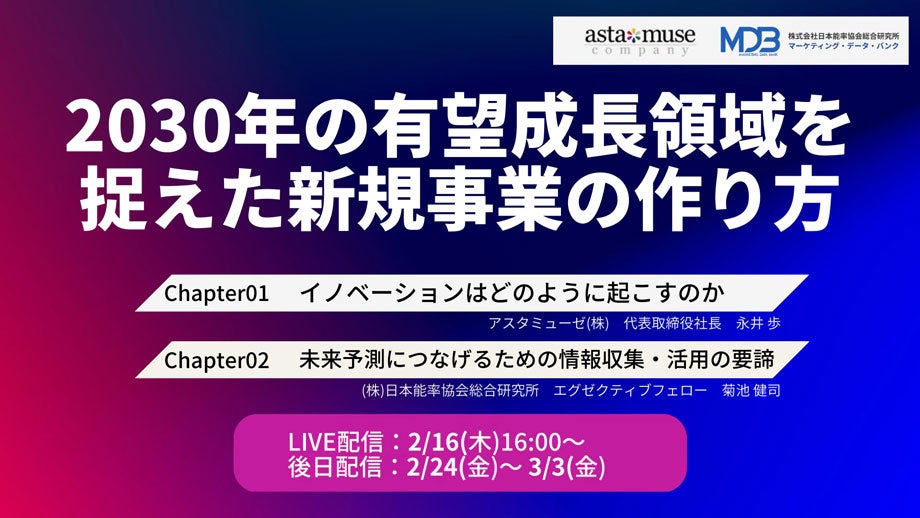 【日本能率協会総合研究所xアスタミューゼ共催】無料ウェビナー「2030年の有望成長領域を捉えた新規事業の作り方」を開催