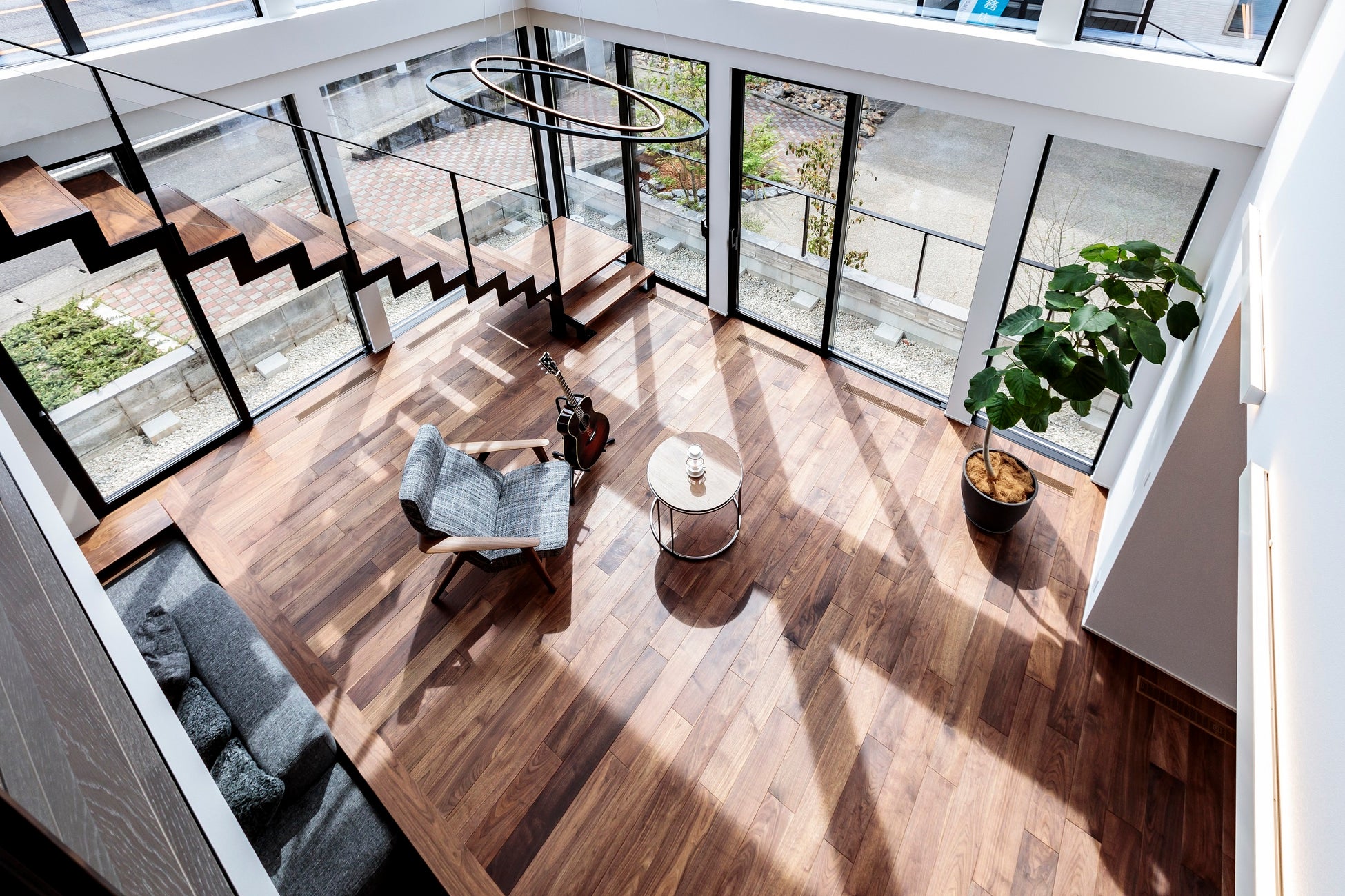 木造建築企業として技術の研究開発を続けるAQ Groupは「構造実験棟」をはじめとする倉庫だけでなく、木造マンションシリーズ「AQフォレスト」など、中大規模木造建築もリリース。2024年3月には純木造8階建て本社ビルが完成し、その技術力を実証してきました。この技術力は当然、一般住宅にも反映されています。AQ Groupのオリジナル構法である「AQダイナミック構法」や「木のみ構法」は、「構造実験棟」に見られる16mスパン500㎡超の大空間を実現させることができ、8階建てビルに耐えうる強度を兼ね備えた建築技術で、注文住宅アキュラホームなどにも応用されています。