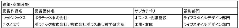 ポラスグループ(本社:埼玉県越谷市、代表取締役:中内 晃次郎)の木造施設「ウッドボックス」と、「テクノラボ」が、「ウッドデザイン賞2025」〈建築・空間分野 ライフスタイルデザイン部門〉を受賞しました。ウッドデザイン賞の受賞は4年連続11回目となります。