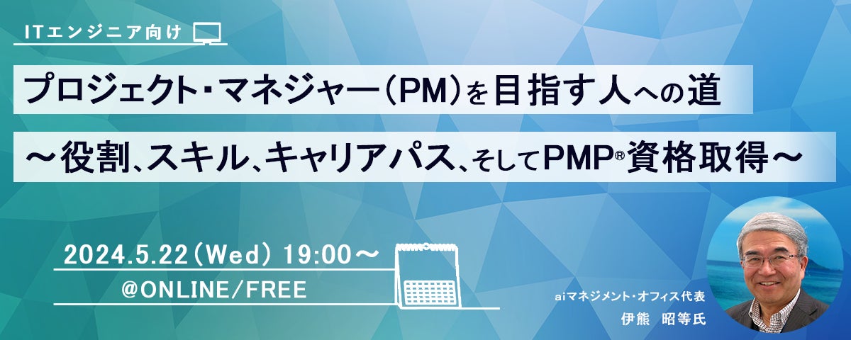 本セミナーでは、プロジェクト・マネジャーを目指す方々に向けて、プロジェクトマネジメントの基本的な役割と責任から始め、必須のスキルやキャリアパス、人気の国際資格PMP®資格取得方法まで幅広く解説。プロジェクト・マネジャーとしての成功に必要な情報や戦略を提供し、参加者が自己成長とキャリアの発展を達成するための勘所を提供します。