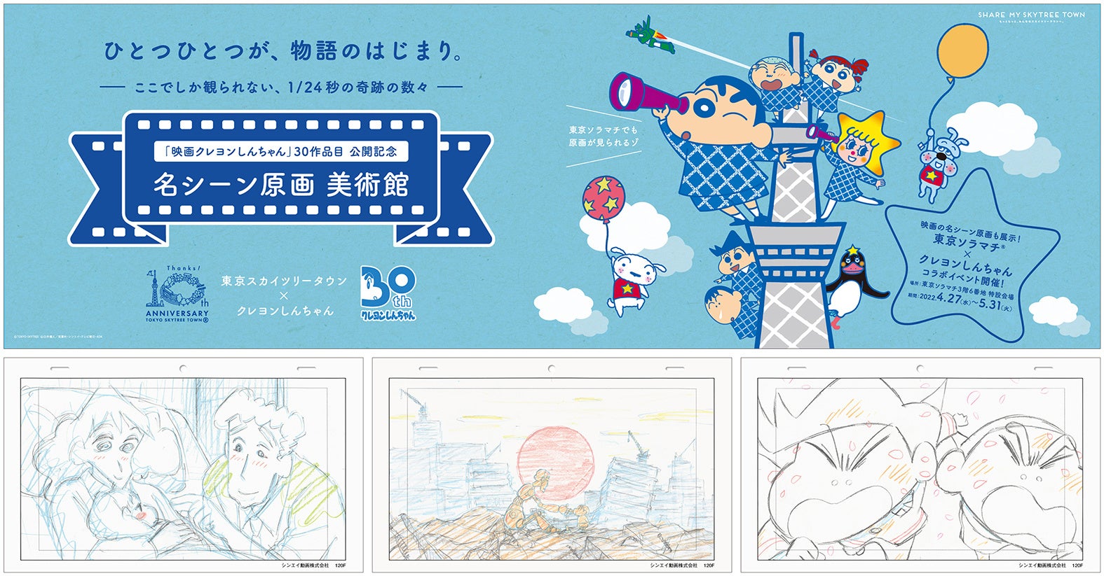 映画クレヨンしんちゃん製作委員会は、『映画クレヨンしんちゃん30周年記念企画』×『東京スカイツリータウン開業10周年企画』として、「映画クレヨンしんちゃん」名シーン原画美術館を東京スカイツリータウン内東京ソラマチにて2022年4月27日(水)より開催します。