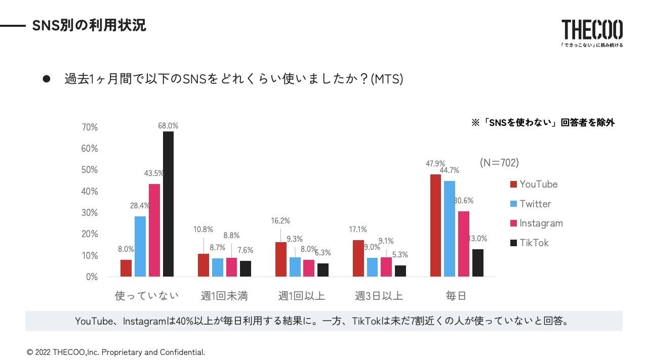 - 毎日使うSNS1位はYouTube、TikTokは13%にとどまる