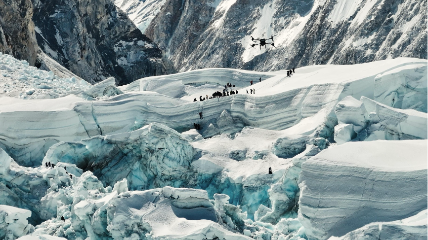 クンブ氷瀑を通る危険な登山は、通常、気温が最も低く、氷が最も安定している夜間に行われます。DJIの輸送ドローンは、特別な改造が施されていないにも関わらず、昼夜を問わず、キャンプ地間を、往復12分で15 kgの荷物を運ぶことができます。DJIの輸送用ドローンは、危険なクンブ氷瀑を何度も命の危険を冒して進むシェルパ族の負担を軽減することも目的としています。