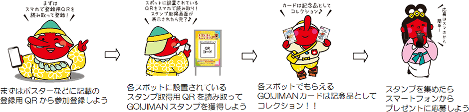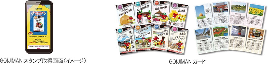 ・参加特典として、それぞれのスポットには楽しい旅の記録としてコレクションできる『GO!JIMANカード』を設置。