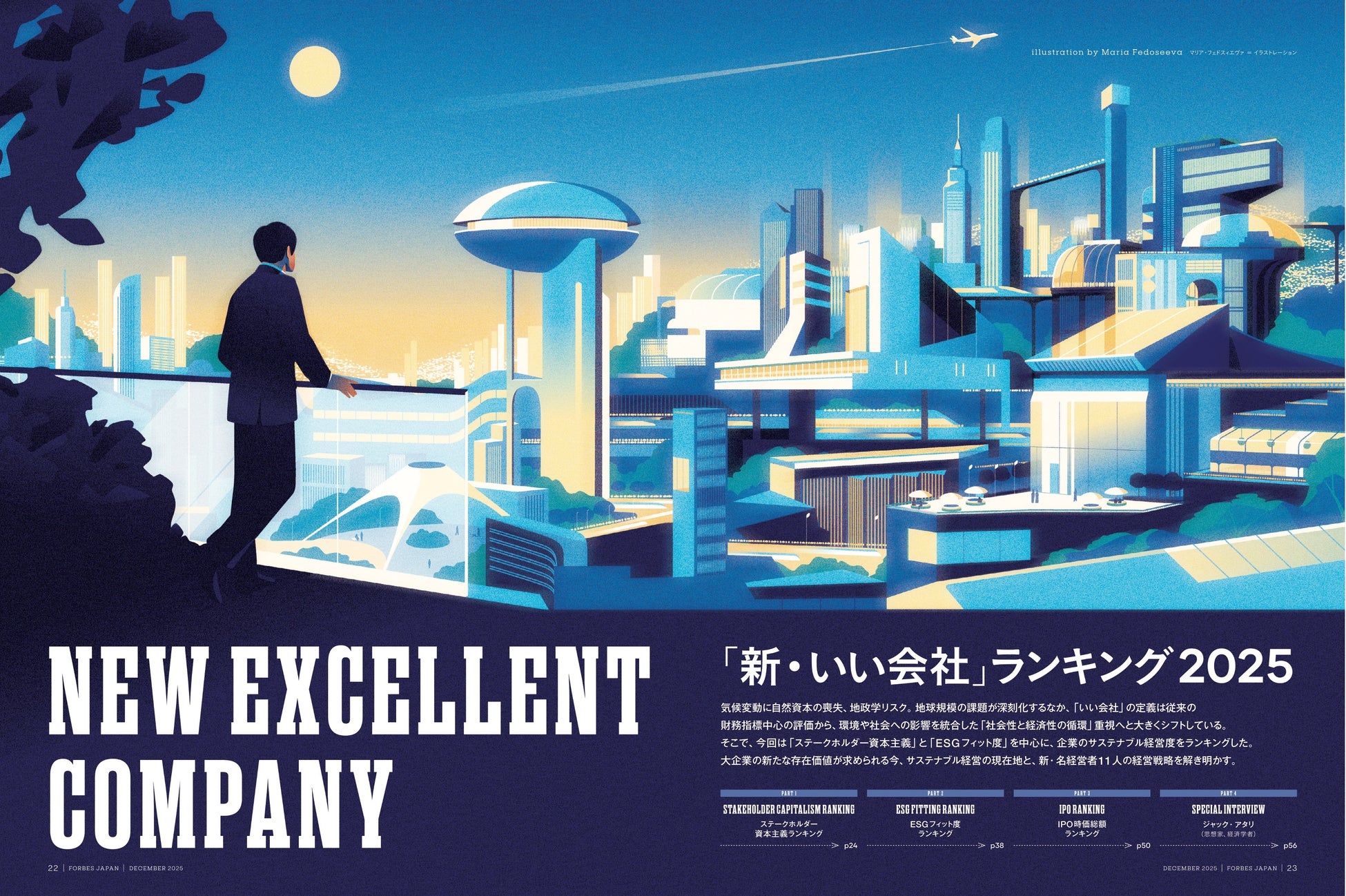 グローバルビジネス誌Forbes JAPAN(発行元:リンクタイズ株式会社、代表取締役社長:角田 勇太郎)の2025年12月号の第一特集は、大企業11社の経営者インタビューを掲載した「新・いい会社ランキング2025」です。株式投資、就職・転職活動をする人のために長期視点で「新・いい会社」を抽出しました。第二特集は非営利セクターをテーマにしたリスト企画「ソーシャルR&Dを実装するNPO50」特集です。