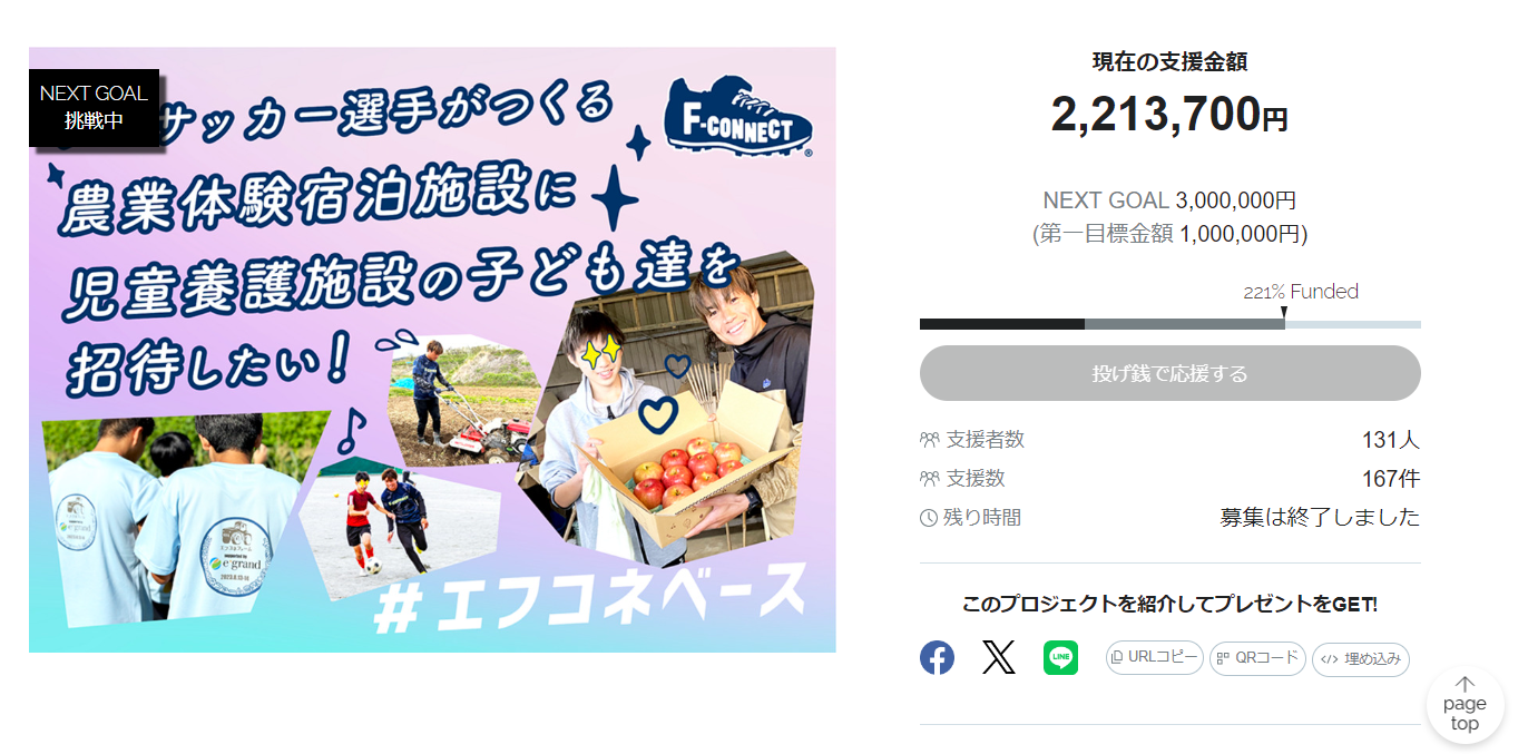 【プロジェクト成功!】F-connect、クラウドファンディング目標金額100万円を上回る221万円を達成!