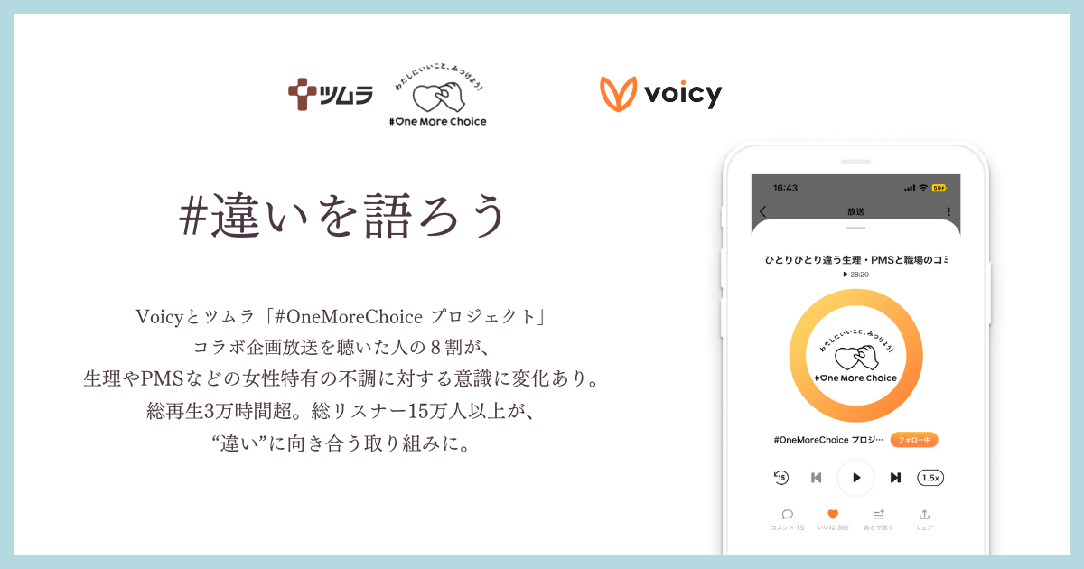 聴いた人の8割が女性特有の不調に対する意識に変化。Voicyがツムラ「#OneMoreChoice プロジェクト」と実施したコラボレーション企画「#違いを語ろう」