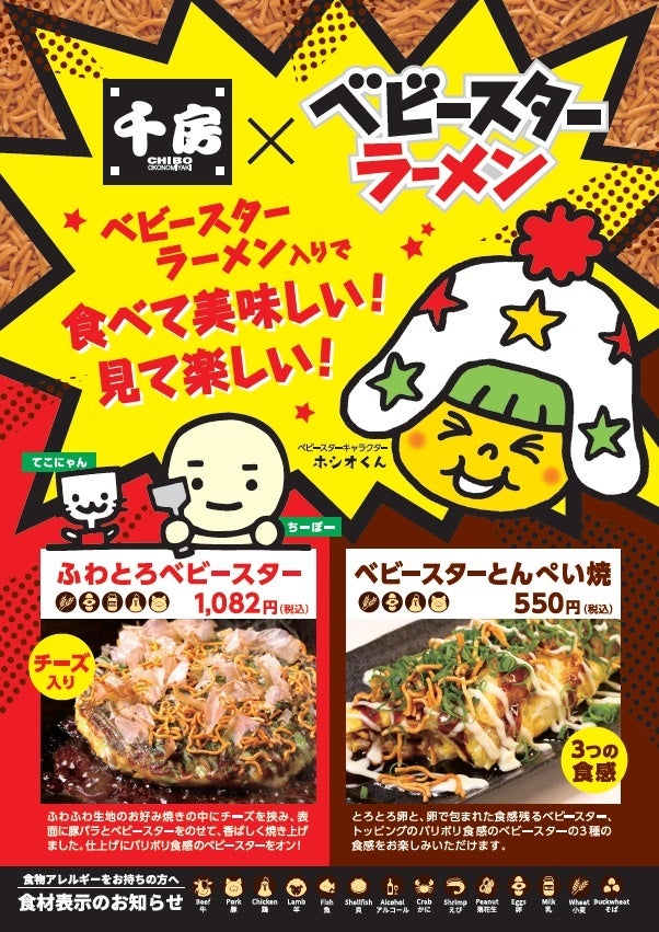 鉄板の組み合わせ!!“粉もん”コラボ お好み焼き専門店「千房」×ベビースター