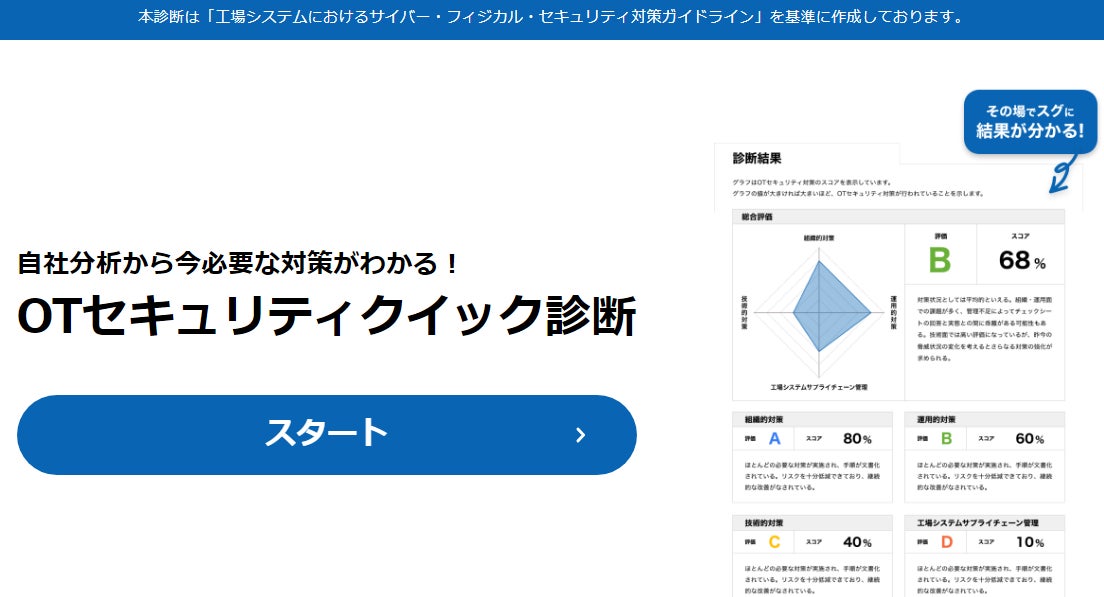 Web上でOTセキュリティ対策の課題を無料でセルフチェックできる「OTセキュリティクイック診断」を公開