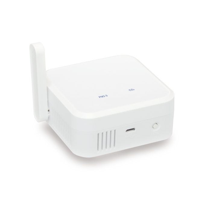 二酸化炭素濃度や温湿度を計測し、定期的にアドバタイズを発信します。オフィスや施設、学校などの快適性向上や感染防止対策に役立てられています。