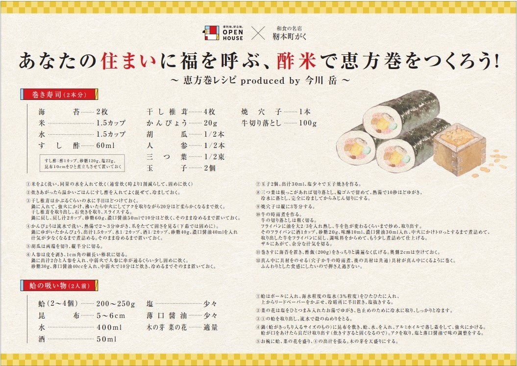 2月3日は節分! OPEN HOUSE×和食の名店“靭本町がく”「あなたのすまいに福を呼ぶ、酢米で恵方巻をつくろう!」を実施