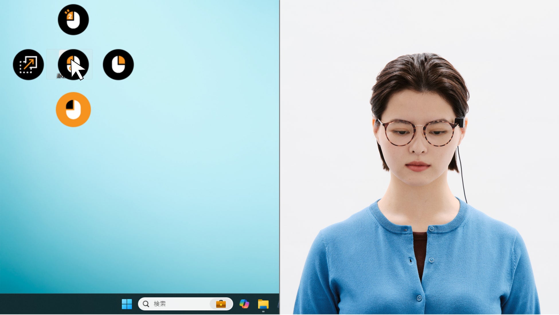 使用方法は、JINS ASSISTをお持ちのメガネに装着し、コネクタをPCと接続するだけ。有線のため、充電や接続が切れる心配はいりません。操作には大きな動作を必要としないため、長時間使い続けても疲労感を抑えることができます。基本的なマウス操作に加え、補助ソフトの拡張機能により、ショートカットキーやスクロールなどさまざまな操作が可能です。