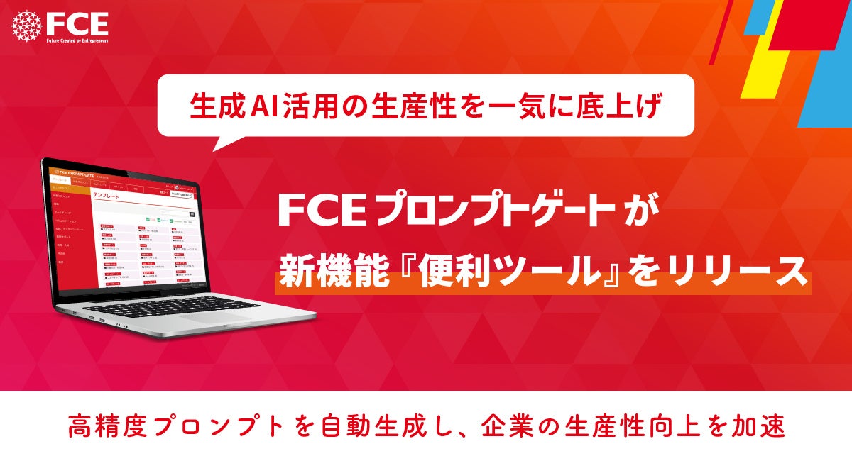 株式会社FCE(東京都新宿区、代表取締役社長:石川淳悦、東証:9564)は、企業の業務効率と成果を飛躍的に向上させる生成AIの組織活用プラットフォーム「FCEプロンプトゲート」に、新機能「便利ツール」を追加リリースしました。新機能「便利ツール」により、これまで多くの手間や時間を要していたプロンプトの最適化や文字起こし作業、資料の作成が劇的にスピードアップし、企業が生成AIを活用する上での生産性向上を一気に加速させます。