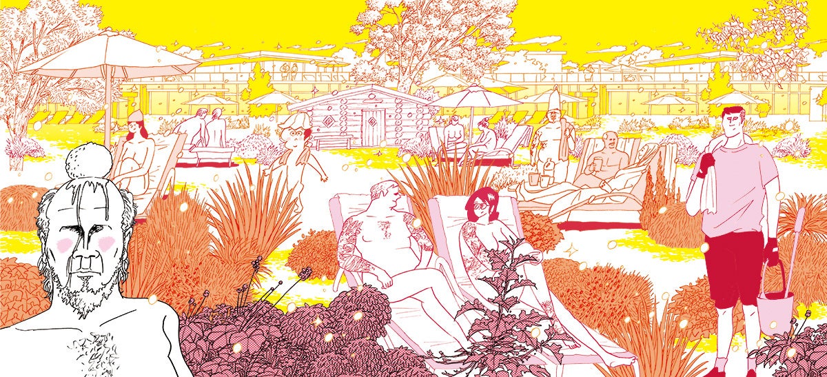 サウナの本場・フィンランドとスウェーデンのハパランダを巡る“北欧サ旅”を描いた1巻に続き、2巻ではドイツサウナをフィーチャー。ドイツサウナは、世界でも珍しい「オールヌードで男女混浴で楽しむサウナ」という特性ゆえ、現地そのままのムードが伝わってくる写真や映像などは基本的にネットにも上がってきません。これまで数え切れないほど多くのサウナ施設を巡ってきたサウナ大使のタナカ氏をもってして「地上の楽園」と言わしめたドイツサウナ、ぜひ一度体験してみたいと思う人も多いはず。ただ、特に初めて行く人にとってはできれば雰囲気を知ってから行きたいものです。そういった意味でも、マンガだからこそできる表現で最大限伝わるよう圧倒的画力で描かれた本作は、大変貴重な資料になることは間違いありません。また、ドイツサウナならではの特別なルールも本作ではしっかり描かれているのでご安心ください。