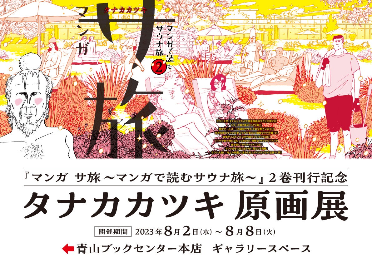 『マンガ サ旅』2巻発売記念としまして、8月2日(水)〜8月8日(火)の1週間、青山ブックセンター本店にて『マンガ サ旅』初の原画展を開催。緻密でありながら、のびのびとした描線が魅力のタナカカツキ氏の貴重な生原画20点以上がフリーで見られます。大変貴重なこの機会をどうぞお見逃しなく。