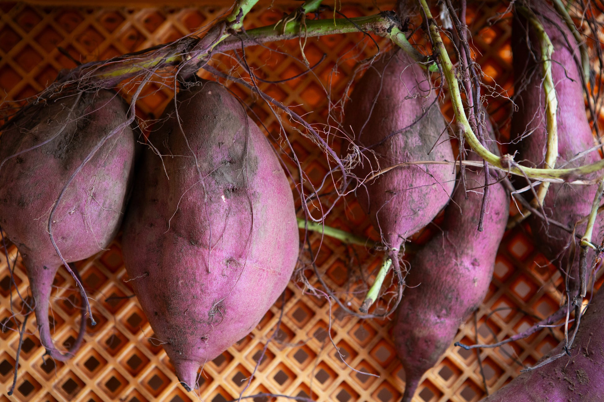 鉾田市内「米川農園」で育てられた「べにはるか」をメニューに取り入れます。鹿島灘の潮霧が立ち込めるこの土地は、ミネラルを多く含んだ土壌が特徴で、甘く美しいかんしょ(さつまいも)が育ちます。有機肥料で育てられた「米川農園」のかんしょは「佐之衛門のさつまいも」として親しまれ、全国の市場から指名で注文が入るほどの人気を誇ります。