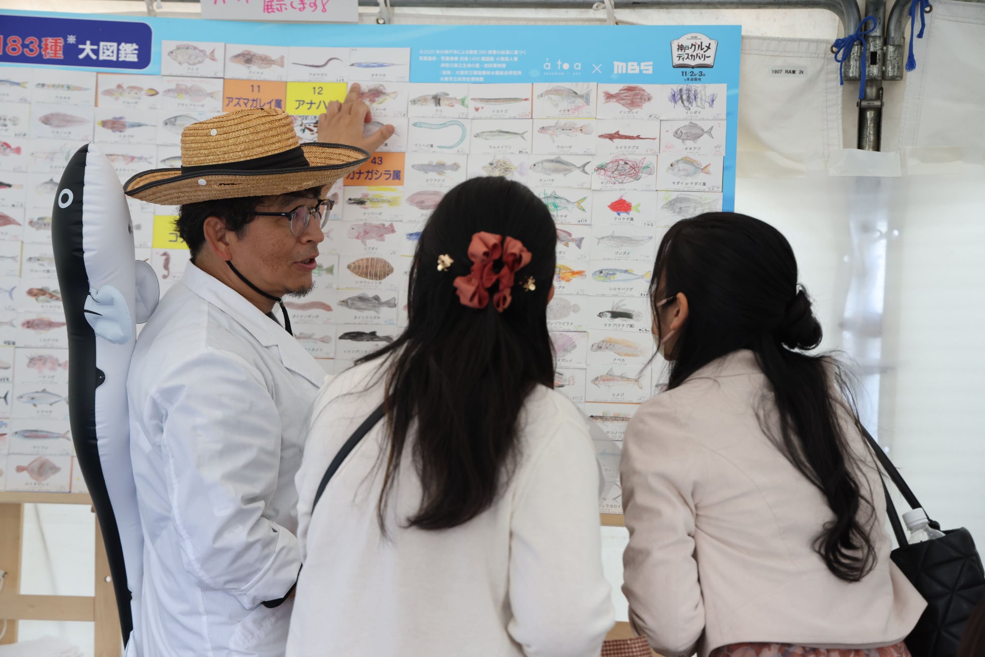 ワークショップに参加する子どもたちの表情は真剣そのもの!親御さんと一緒に話しながら夢中になって取り組んでいました。お魚博士の解説が始まると「へ~」「お~」と満点のリアクション!そして人気を集めた「いきものふれあいコーナー」では、怖がりながらも恐る恐る触る子がいたり、「可愛い~」と笑顔で触る子がいたり、興味津々の子供たちの姿が印象的でした。また、特別企画「ぬり絵でコンプリート!神戸の海のおさかな全183種大図鑑」も無事完成!パネルはátoaにて11月︎9日(土)から17日(日)まで展示されます。