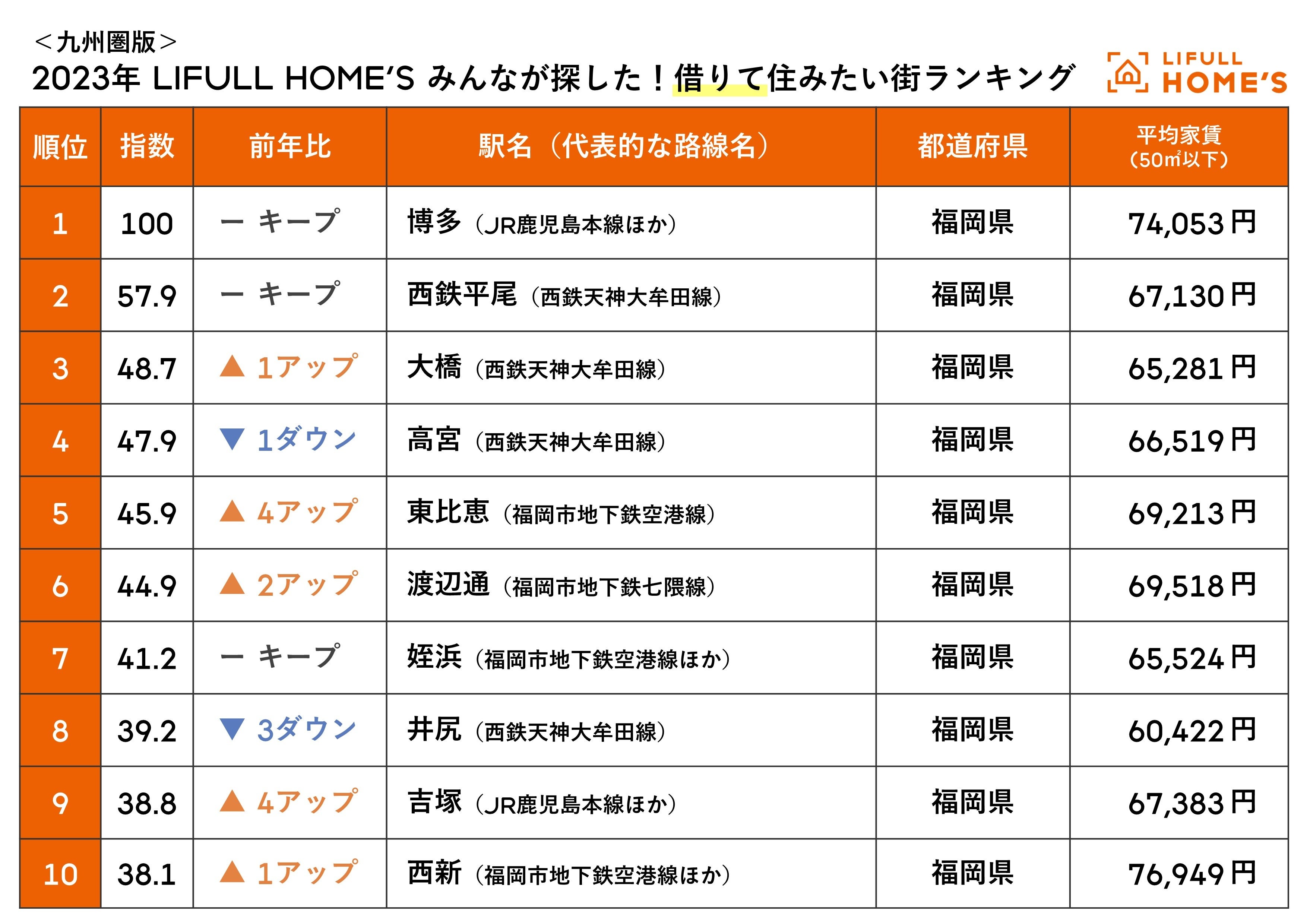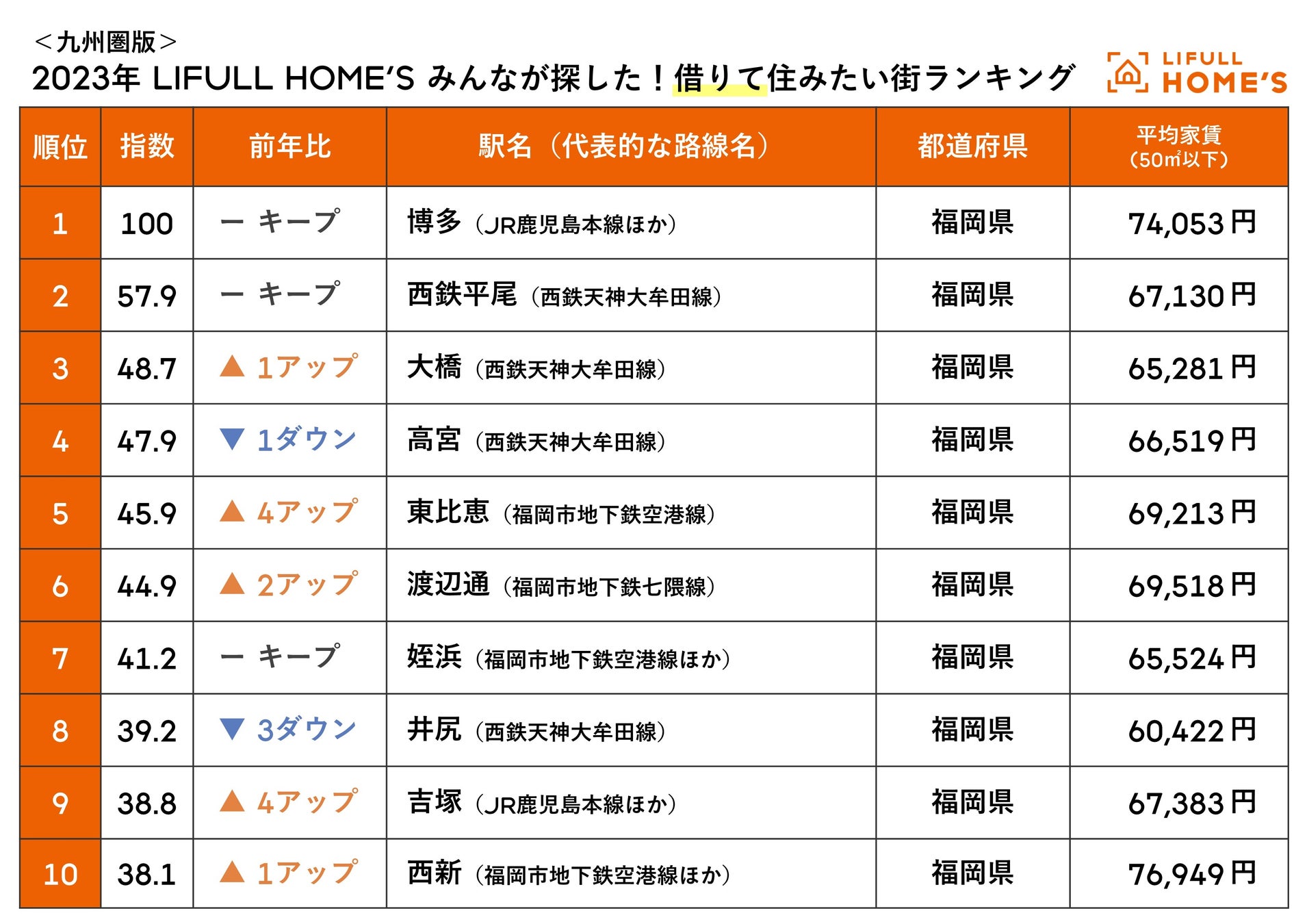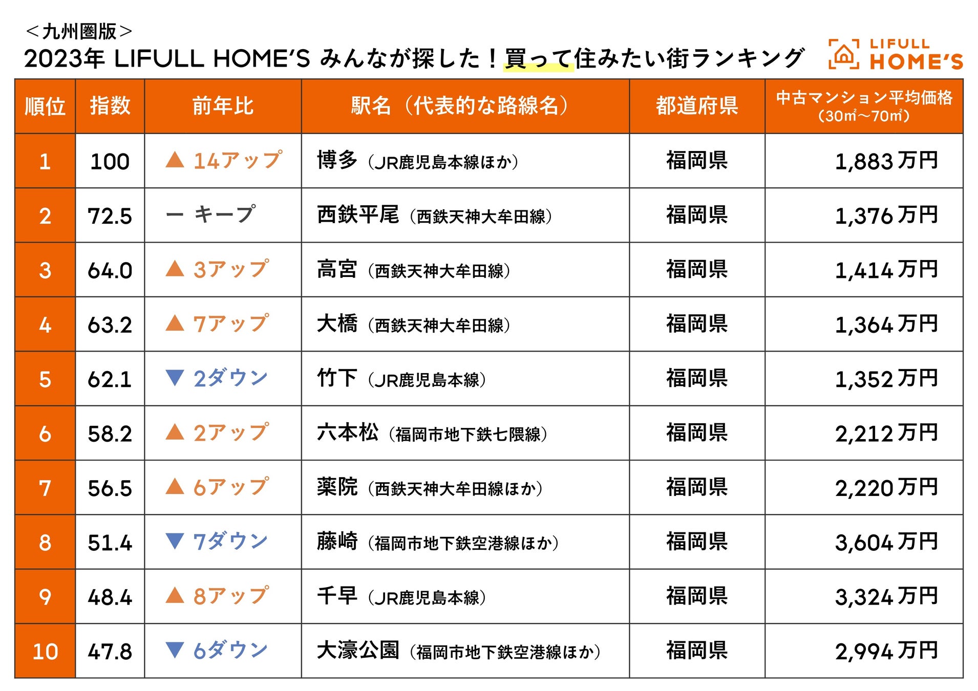 <九州圏版>2023年 LIFULL HOME'S みんなが探した!住みたい街ランキング