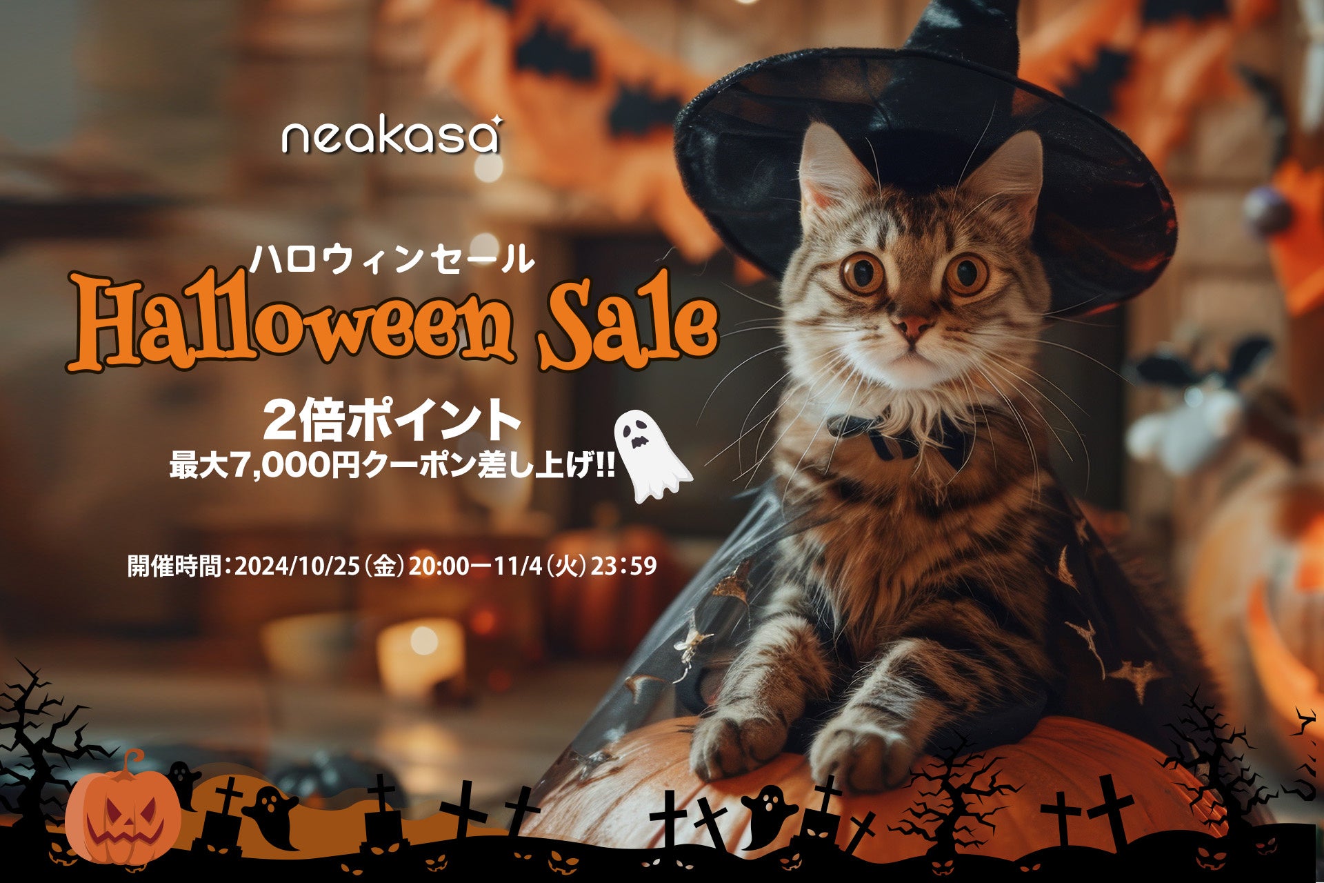 最大43%OFFの「NEAKASA ハロウィンセール」を開催!最大7000円のクーポンを配布中!さらに!2倍ポイント!