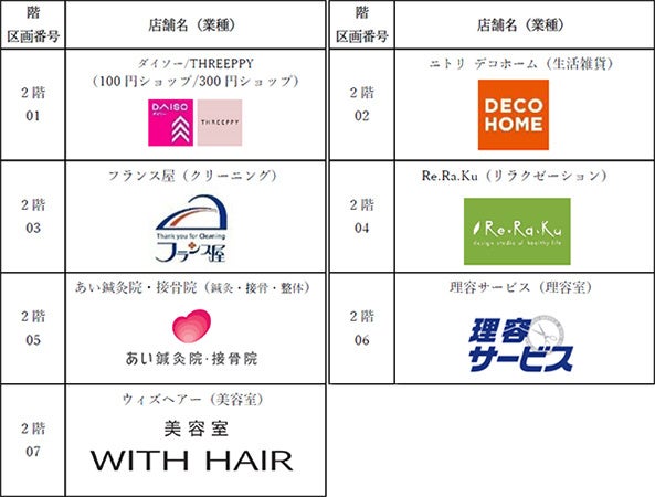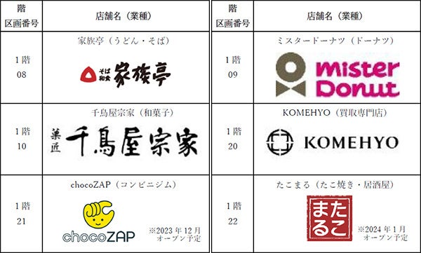 ※:このうち次の2店舗につきまして、「chocoZAP」は2023年12月、「たこまる」は2024年1月にオープンの予定です。