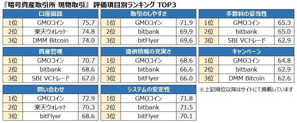 【bitbank】が総合2位 【bitFlyer】が総合3位 【SBI VCトレード】【DMM Bitcoin】が同点で総合4位に 高評企業に【BITPOINT】【LINE BITMAX】