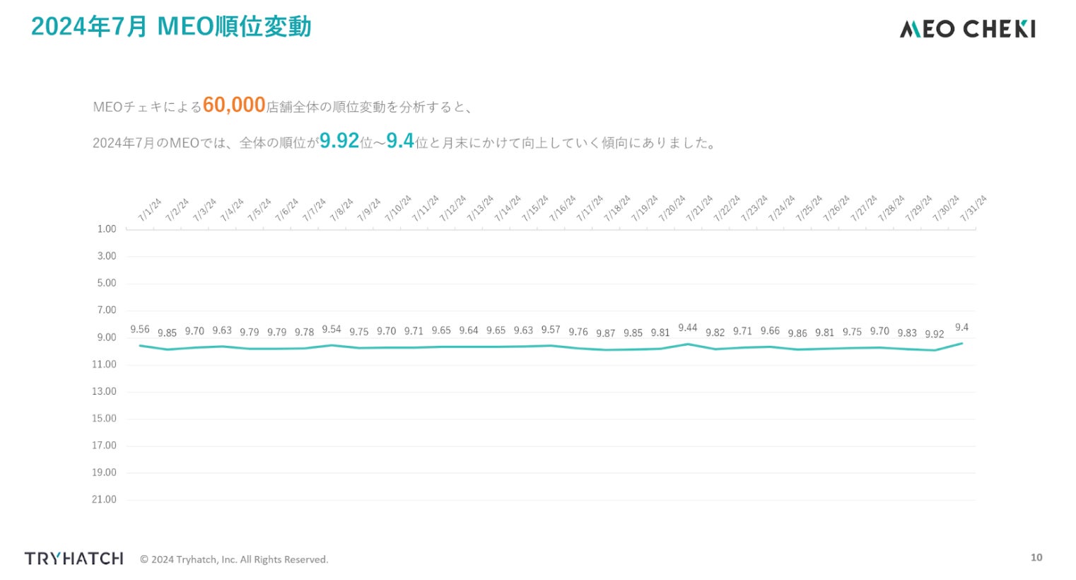 株式会社ベクトル(本社:東京都港区、代表取締役会長兼社長:西江 肇司、東証プライム:6058)の子会社である株式会社トライハッチ(東京都新宿区、代表取締役社長、武藤 尭行、以下「当社」)は、独自開発している店舗向けデジタルマーケティングツール「MEOチェキ」を活用して、MEOのアルゴリズム調査やトレンドをまとめた「MEOトレンドレポート」の2024年7月版を無料公開いたしました。