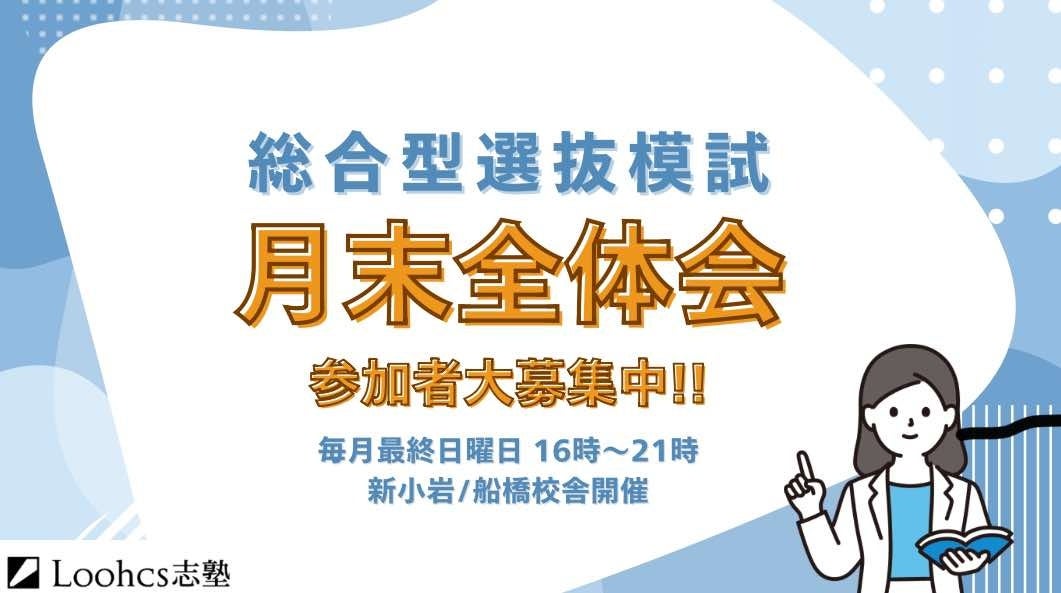総合型選抜は、一般受験とは異なり模擬試験の機会が少ないため、自分の実力を本番前にしっかりと確認することが難しいものです。そこで、Loohcs志塾新小岩校舎と船橋校舎では、毎月最終日曜日に「月末全体会」を実施し、受験生が総合型選抜の書類提出やプレゼンテーション、面接を体験できる機会を提供しています。