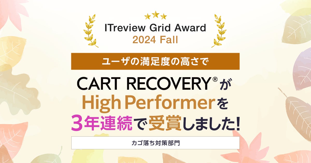 「ITreview Grid Award 2024 Fall」でカゴ落ち特化型MAツール「CART RECOVERY®」が3年連続受賞!