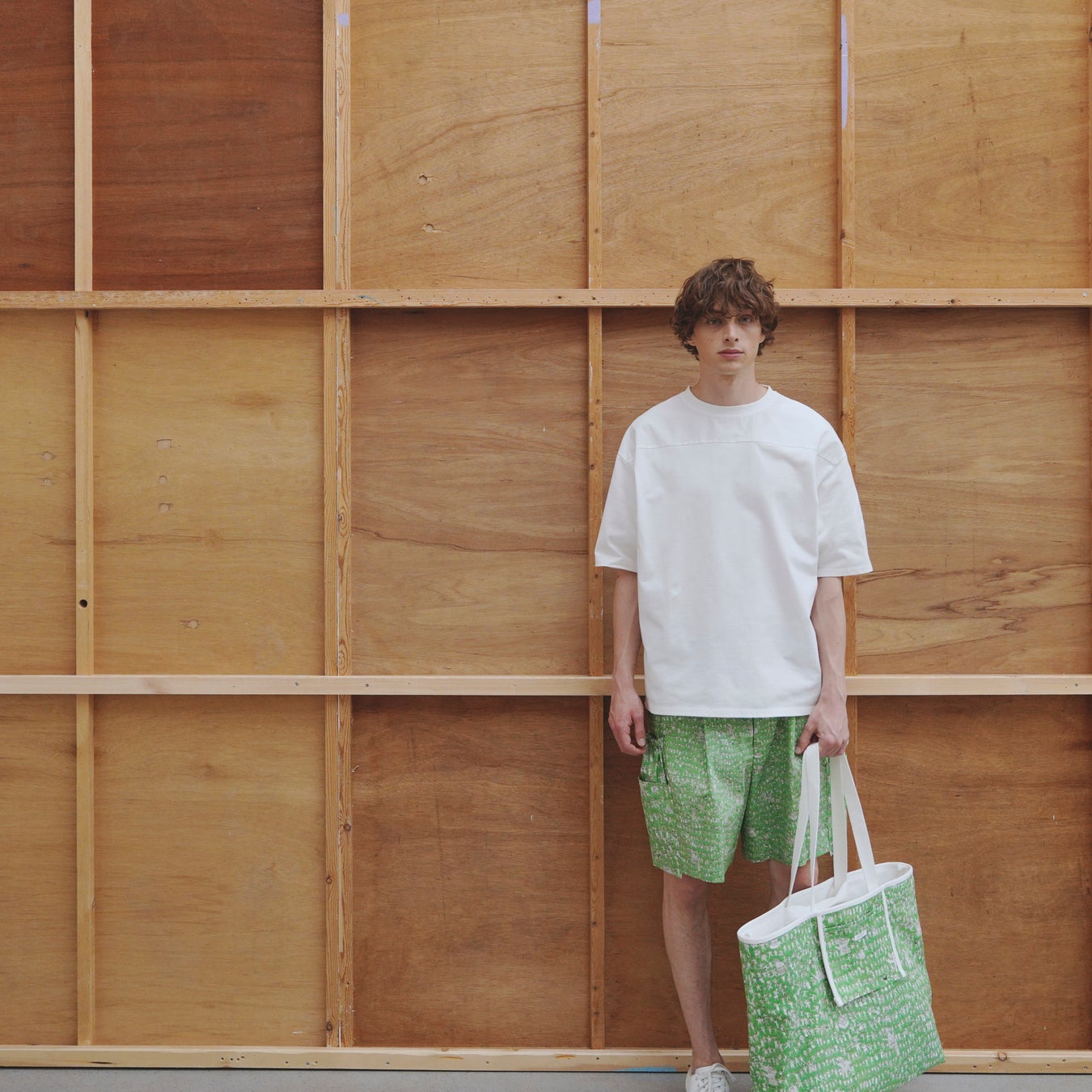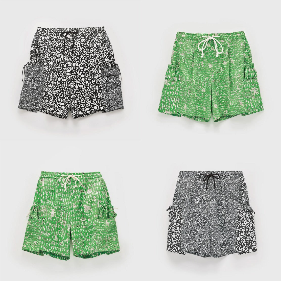 ショートパンツは、ゆとりあるシルエットと大きなポケットが印象的。ギャザーの入った2段のビッグポケットは機能性も兼ね備えています。 ボタンやウエストの紐も、アートによって色を変えています。
