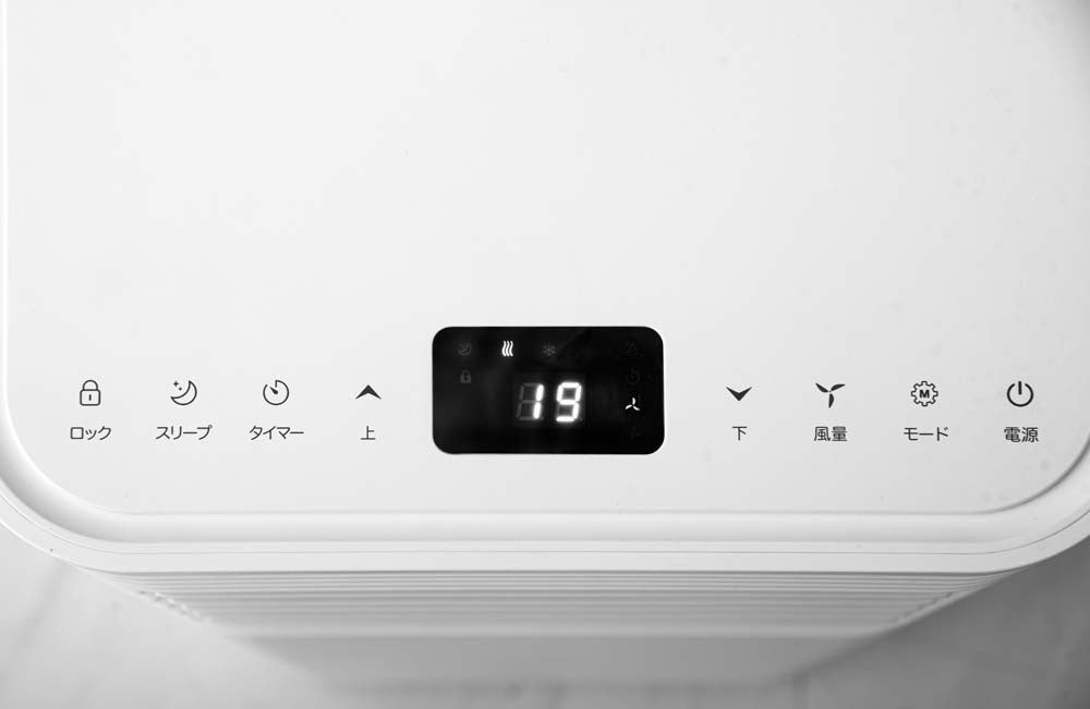 本製品は、様々なシーンでご使用いただけるよう使いやすさにこだわりました。直感的に操作できるシンプルなパネルデザインになっており、表示部分は見やすい液晶表示になっています。また、ソファやダイニングなど少し離れた場所でも寛いだ姿勢のまま操作可能なリモコンも付属しています。お部屋の移動がお掃除の際に簡単に移動できるよう、取っ手とキャスターを付けているので女性でも簡単に移動することが可能です。製品自体もシンプルな構造になっているので、エアコンに比べ気軽にお手入れできるのもポイントです。